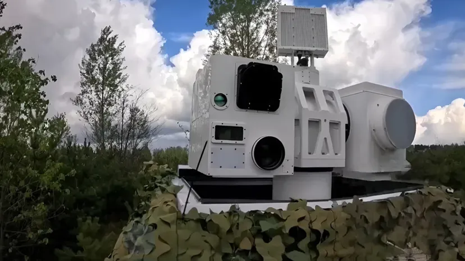На видео показали практически весь процесс уничтожения БПЛА. Можно увидеть, что по беспилотникам, кроме лазера, работают и из обычного стрелкового вооружения.