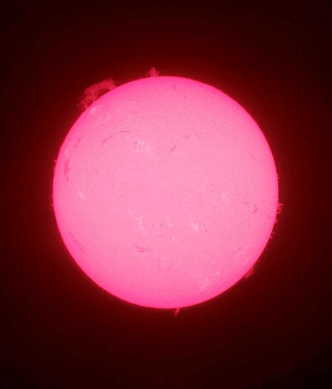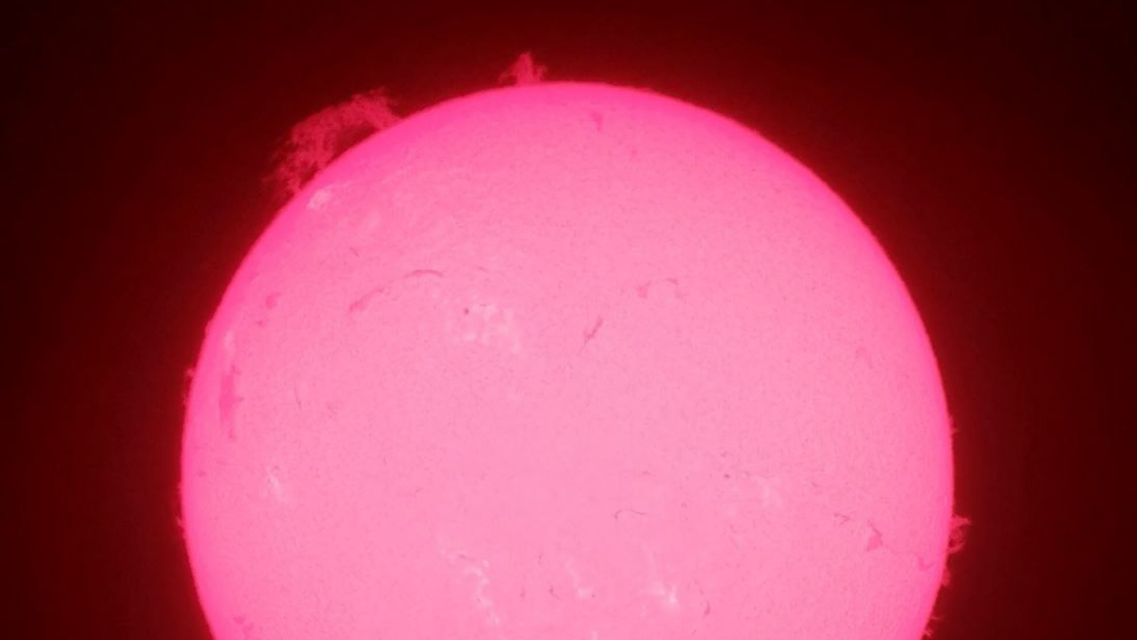 На момент публикации над северо-западным краем солнечного диска зафиксирован мощный протуберанец, постепенно поднимающийся в космическое пространство.