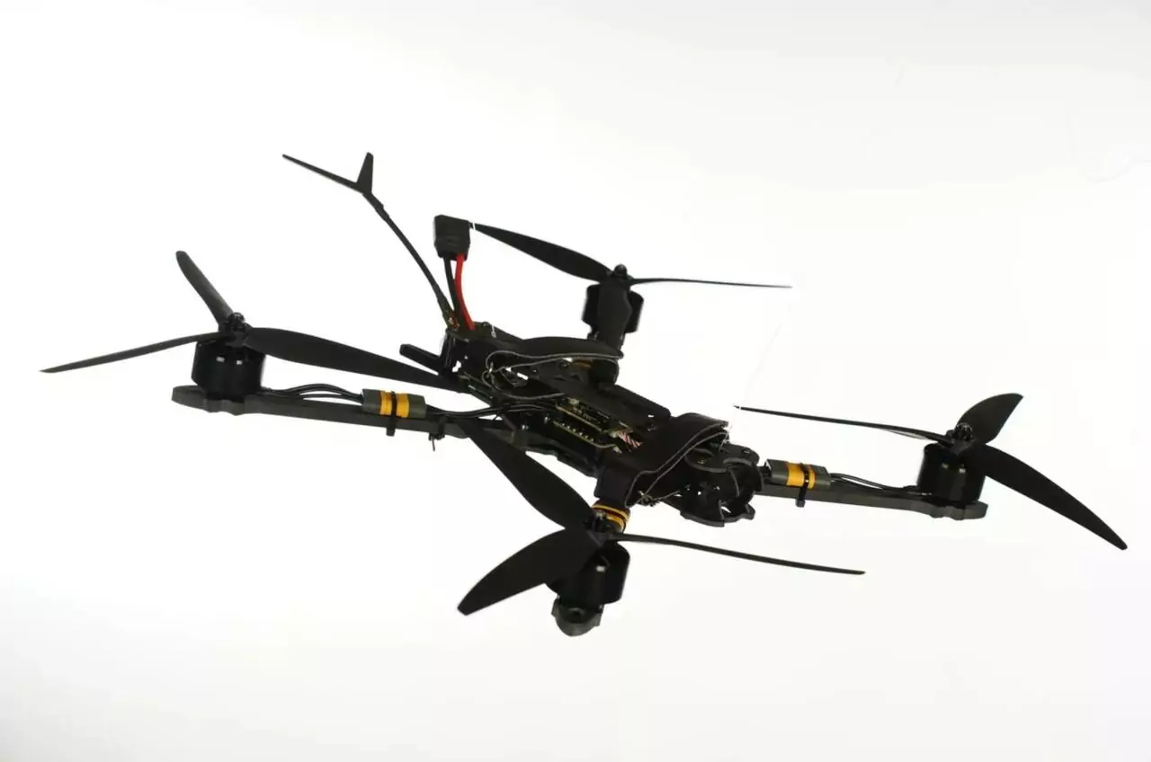 Особенность дрона заключается в возможности установить сменяемые видеопередатчики, радиоприемники, удобные крепления под боевую часть, ленточный сброс, поворотные камеры с переключением с сумеречной камеры на тепловизор.