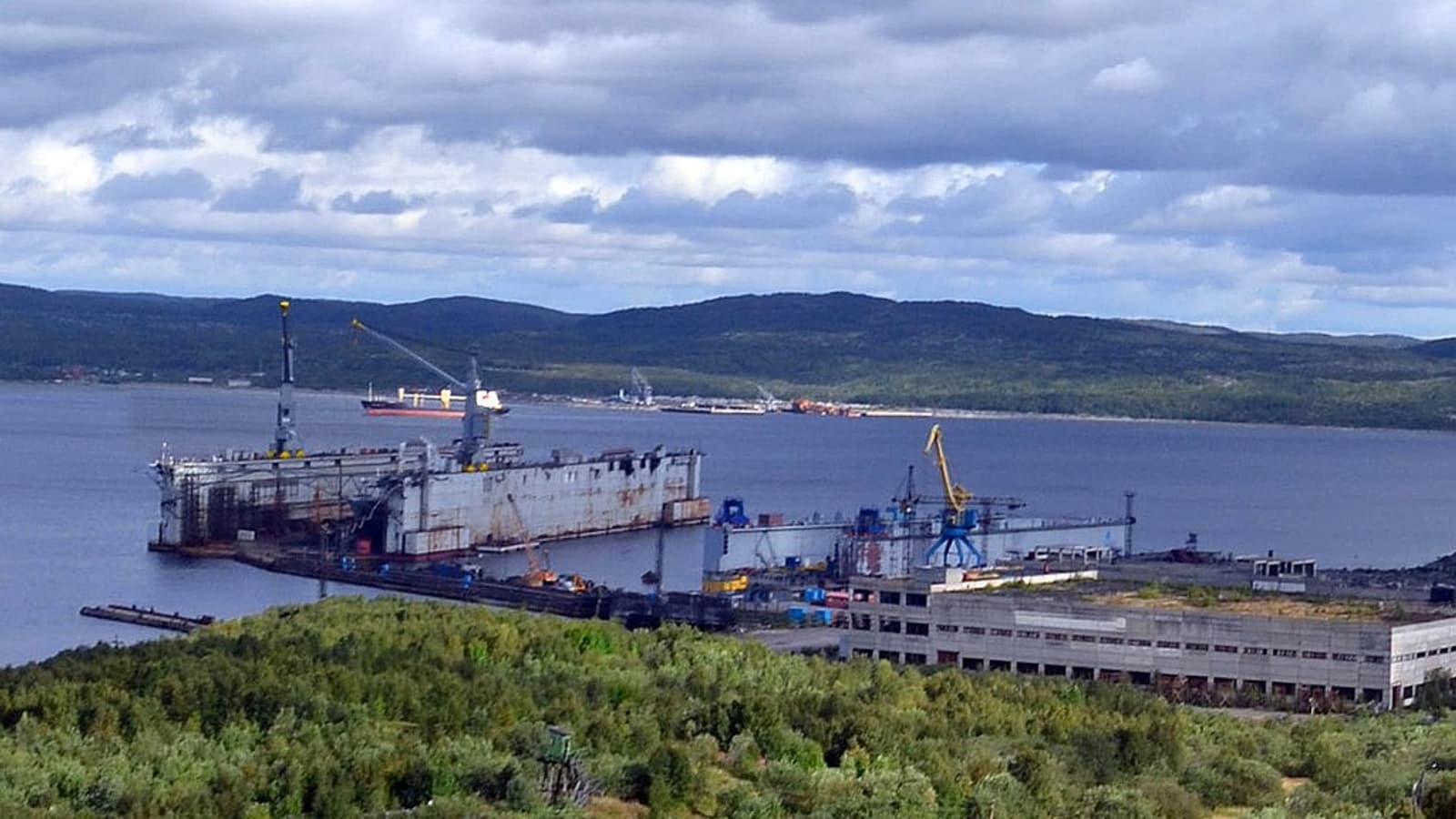 ПД-50 – один из самых больших плавучих доков в мире и единственный подобный в европейской части России. Длина дока – 330 м, ширина – 67 м. Это плавдок построили в конце 1970-х гг. в Швеции по заказу СССР. Он предназначен для ремонта авианосцев.