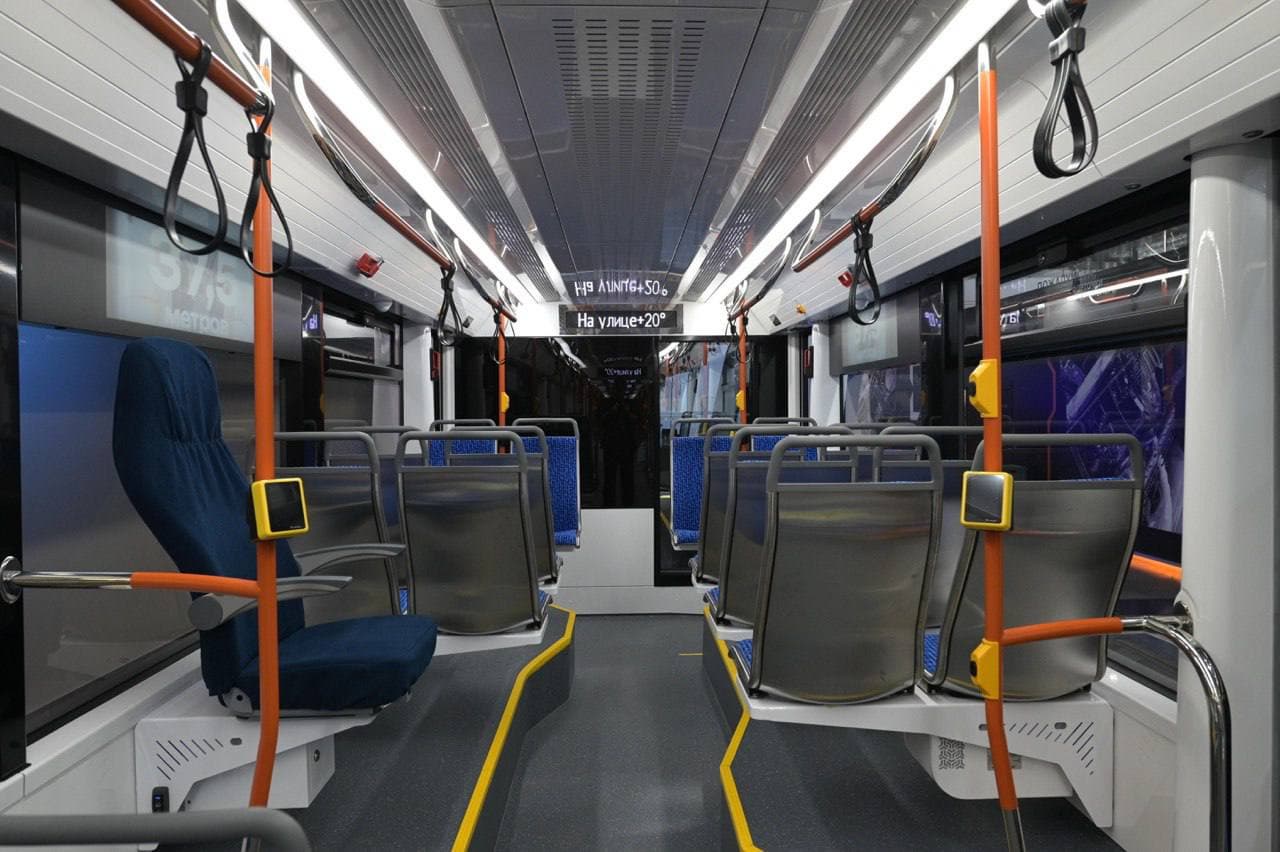 Трамвай оснащен 14 дверьми для быстрой посадки и высадки, а также расширенным на 50 мм салоном. Внутри предусмотрены климат-контроль, USB-розетки, места для маломобильных пассажиров и велосипедов. Особое внимание уделено технологиям безопасности: система активной помощи водителю на базе российского искусственного интеллекта, мониторинг внимания с функцией автоматической остановки и рекуперация энергии.