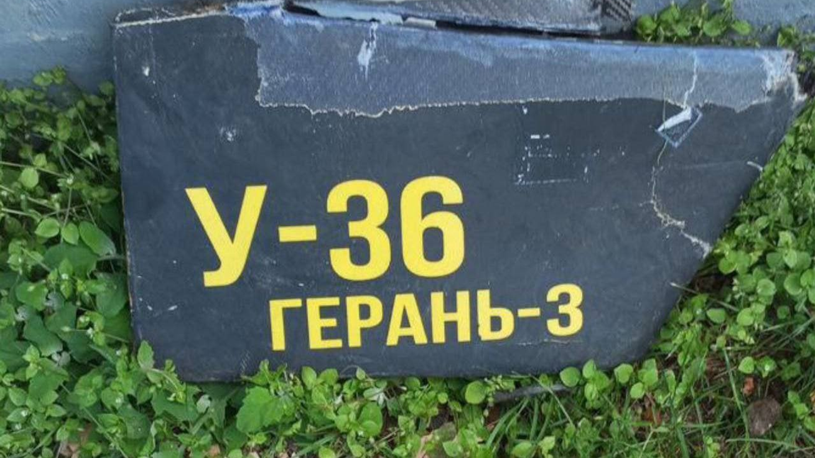 В Сети появилось первое фото обломка нового реактивного дрона-камикадзе «Герань-3» с литерой «У» и номером 36.