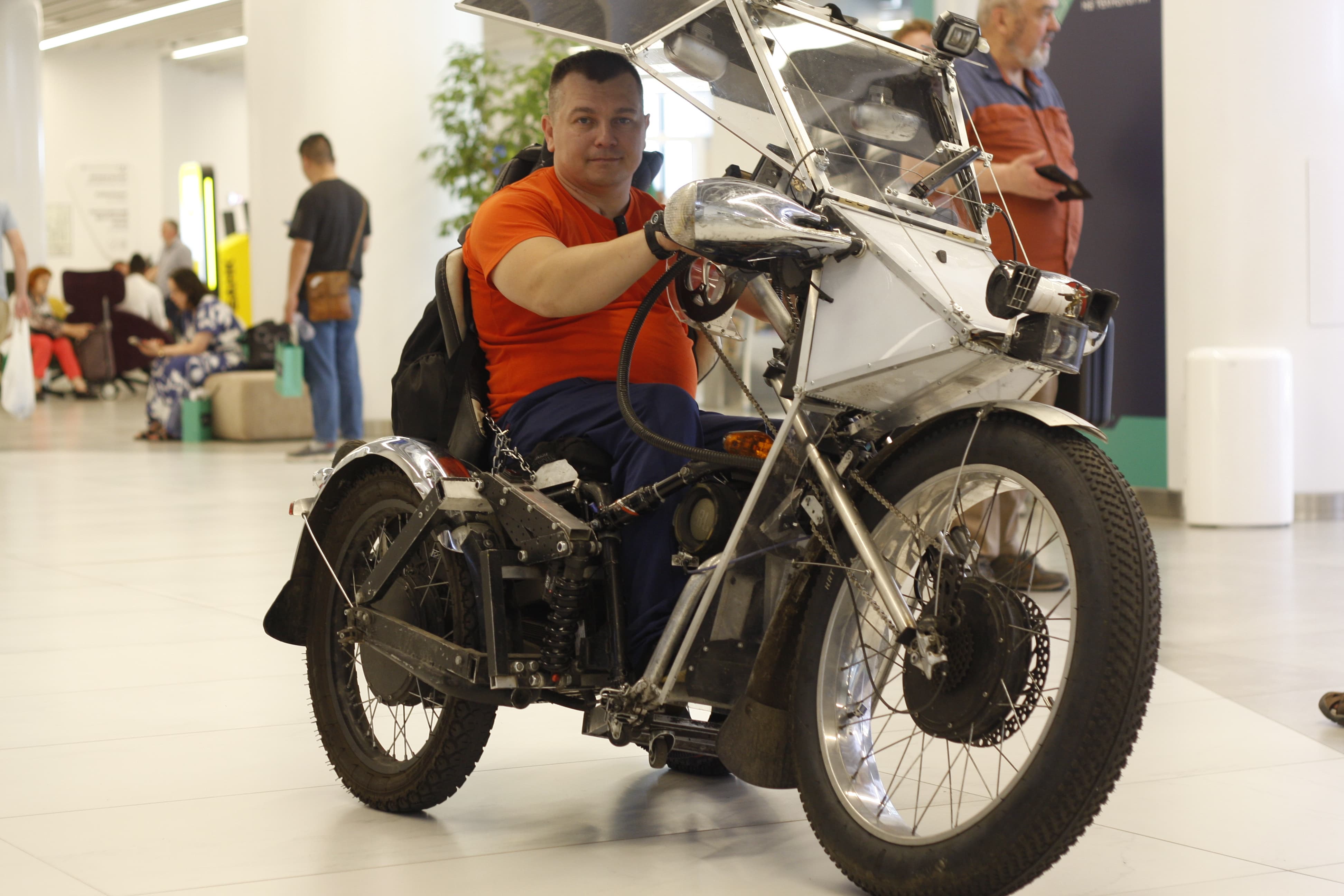 Житель Москвы Игорь Иванов около 10 лет назад получил тяжелую травму спину и лишился возможности ходить. Мужчина не отчаялся, а изобрел собственное транспортное средство, которым с удовольствием пользуется каждый день даже на дорогах общего пользования. На полях форума реабилитационной индустрии и универсального дизайна «Надежда на технологии» Игорь рассказал «Первому техническому» об изделии.