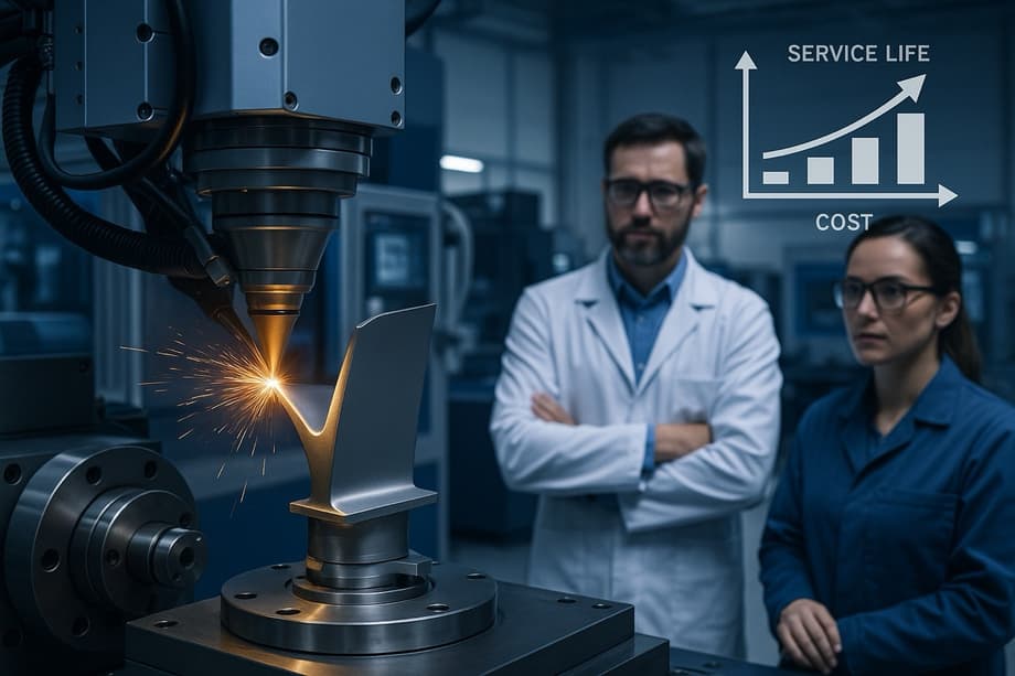 Суть метода — в лазерной обработке поверхности, позволяющей наносить прочные защитные слои из металла или керамических композитов без перегрева чувствительных зон. Это сохраняет форму лопатки и прочность восстановленного участка.