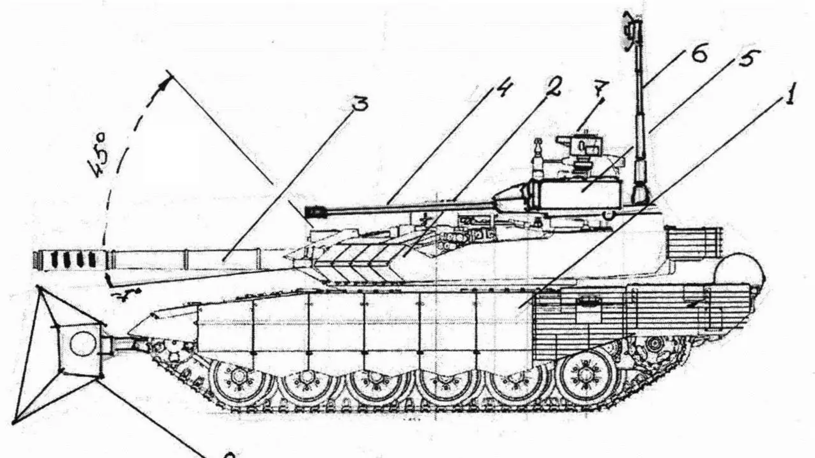 Штурмовой танк также должен быть оснащён комплектом бульдозерного оборудования с установленными на нём элементами динамической защиты, а также управляющей и наблюдательной аппаратурой, установленной на выдвижной мачте с гидравлическим или электромеханическим приводом.