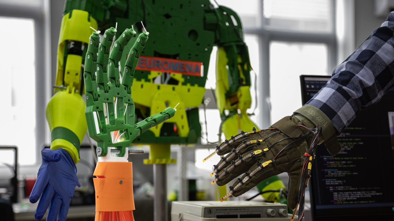 Первым образцом стал тандем «перчатка — робо-рука» в режиме «тени»: движения пальцев оператора точно копируются моделью. Система объединяет сенсоры и мемристивный процессор, минимизированный по размеру и энергозатратам.