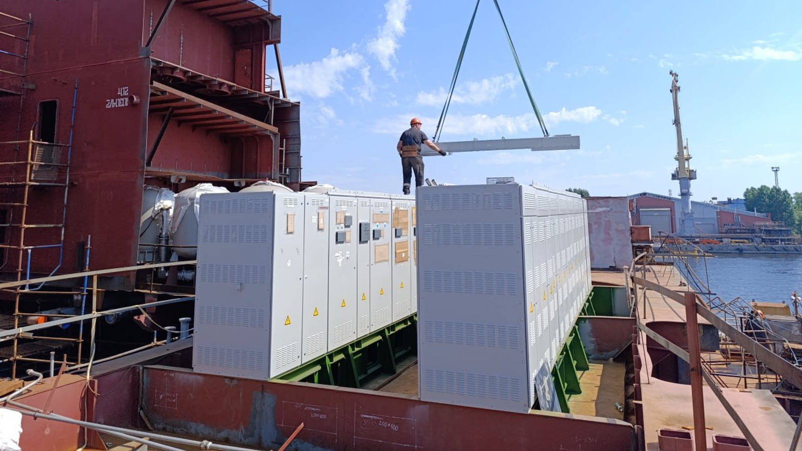 Восьмисекционная конструкция весом 14,5 тонн была установлена с помощью кранового оборудования и специальной такелажной оснастки. Работы выполняли специалисты стапельного, достроечно-малярного и судомонтажного цехов. Это уже второй ГРЩ на борту — первый смонтировали ранее в этом году.