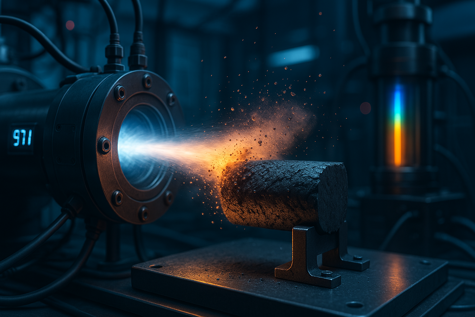 Сотрудники НИИ механики МГУ провели эксперименты на установке «Ударная труба», чтобы изучить, как графит разрушается под действием ударных волн. Эксперимент зафиксировал спектры излучения ударно нагретого газа рядом с графитовой пластиной, который содержал продукты абляции вблизи поверхности пластины.