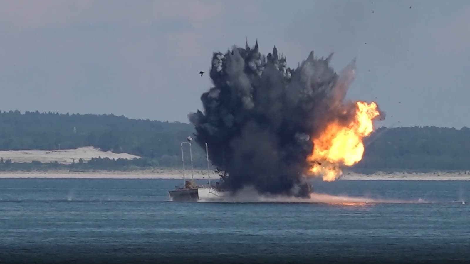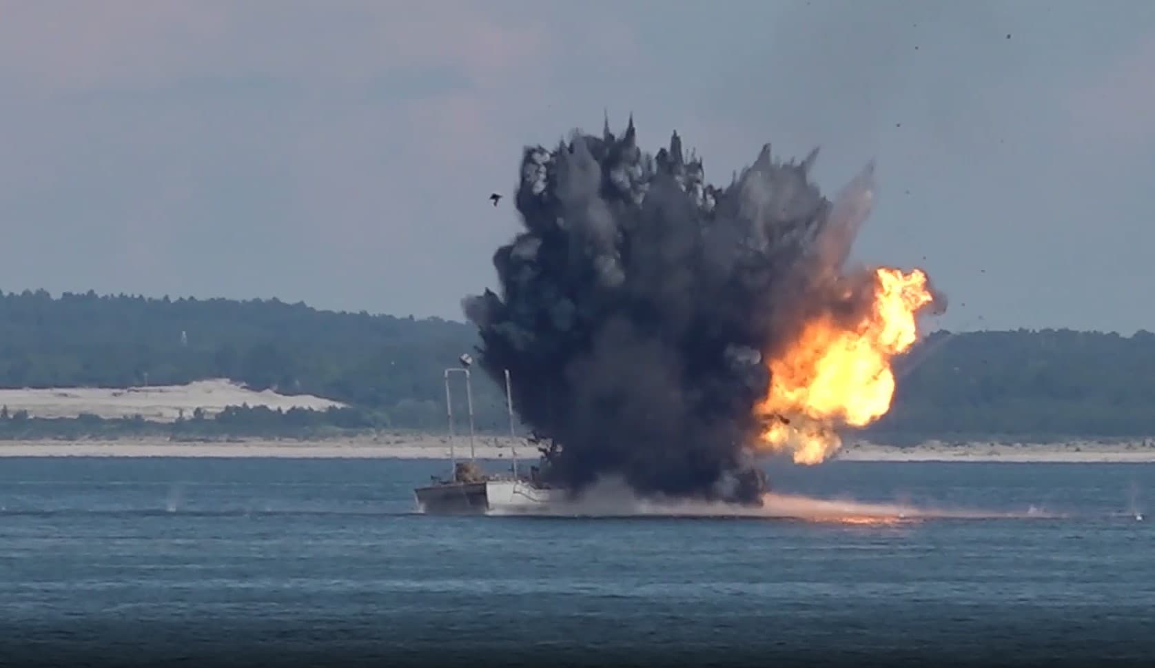 Силы Балтийского флота на учениях «Июльский шторм» уничтожили корабль условного противника комбинированным применением беспилотных морских систем. Об этом сообщила пресс-служба флота.