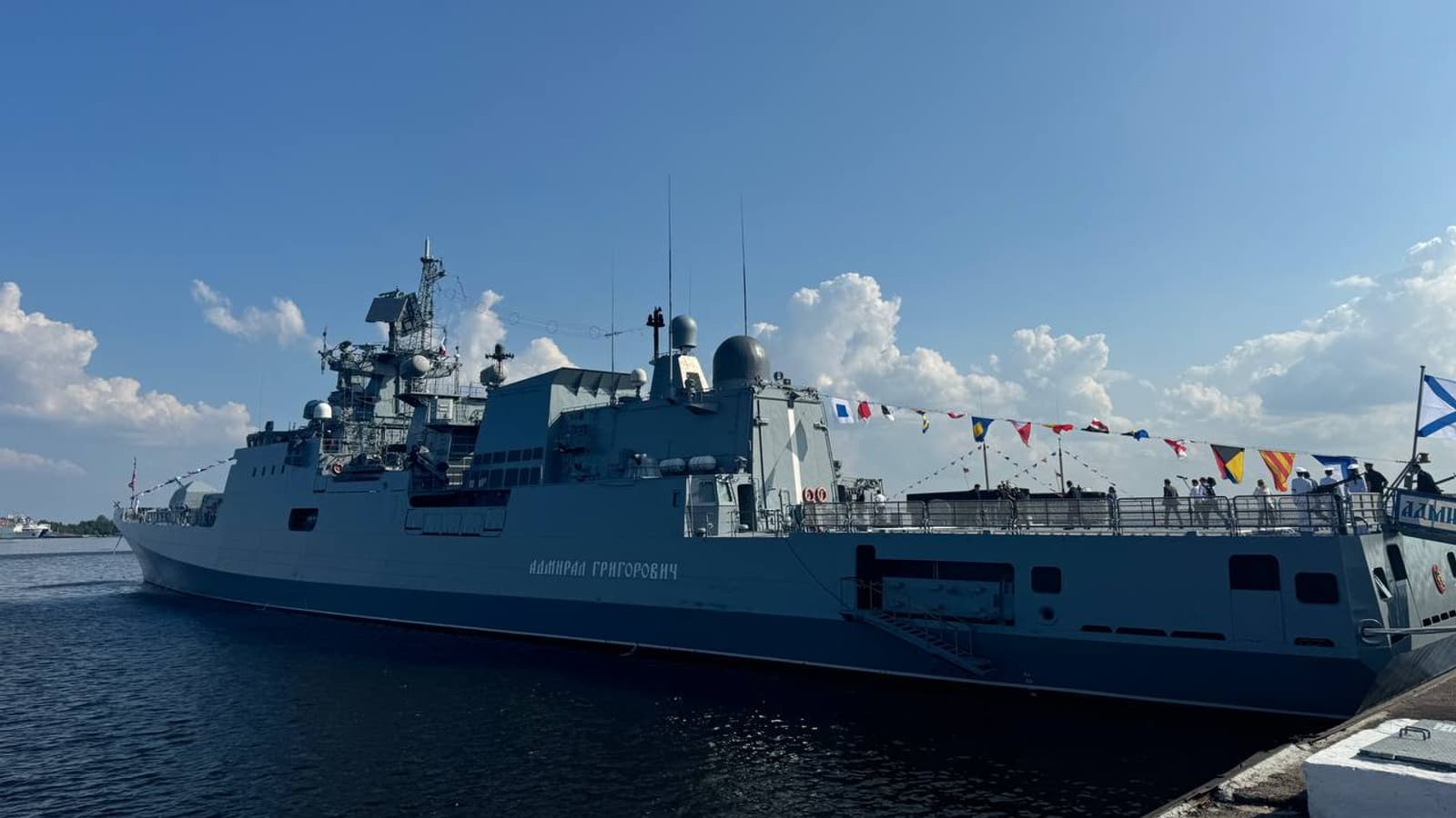 Фрегат Черноморского флота проекта 11356 «Адмирал Григорович» находится на базе Военно-морского флота (ВМФ) России в Кронштадте в Ленинградской области. В воскресенье, 27 июля, его посетил президент РФ Владимир Путин.