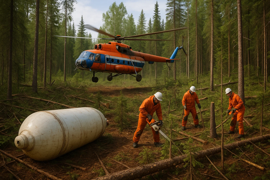 Для вывоза фрагмента пришлось подготовить посадочную площадку. Спасатели спустились методом беспарашютного десантирования, вырубили деревья и расчистили место для вертолета. Экологи проверили уровень радиации — он оказался в пределах нормы.