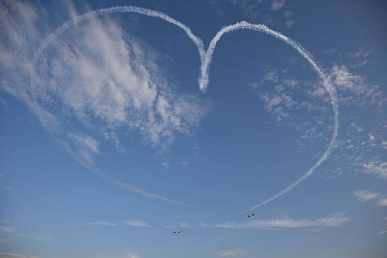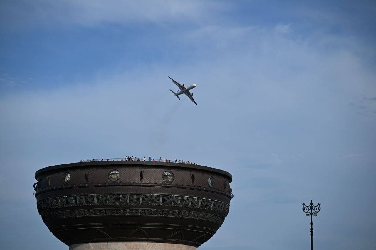 Самолёт пролетел в небе над городом вместе с остальными участниками мероприятия. После небольшой паузы над рукой Казанкой показался стратегический ракетоносец-бомбардировщик Ту-160 «Белый лебедь».
