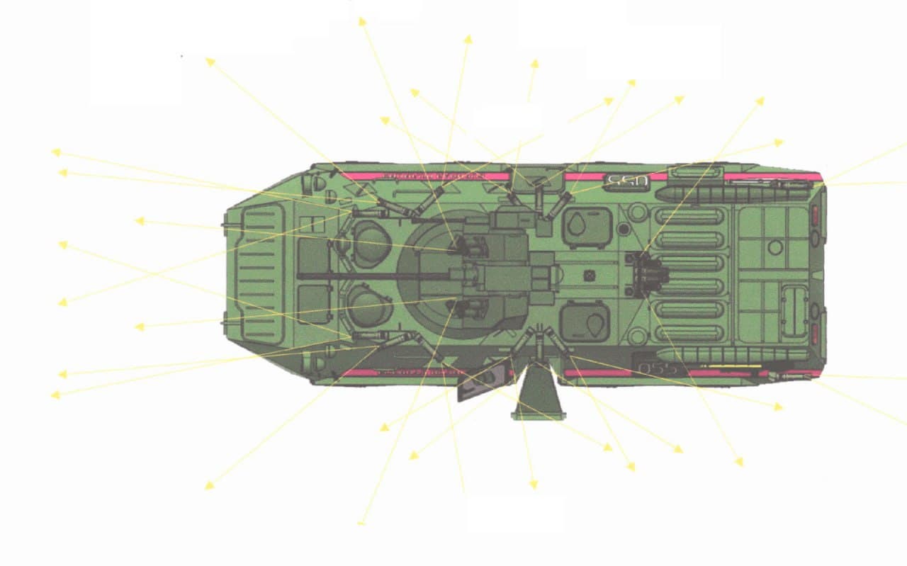 Второй (изображение №2) — поворотно-пусковую установку, стреляющую инженерно-заградительными боеприпасами с функцией программируемого подрыва.
