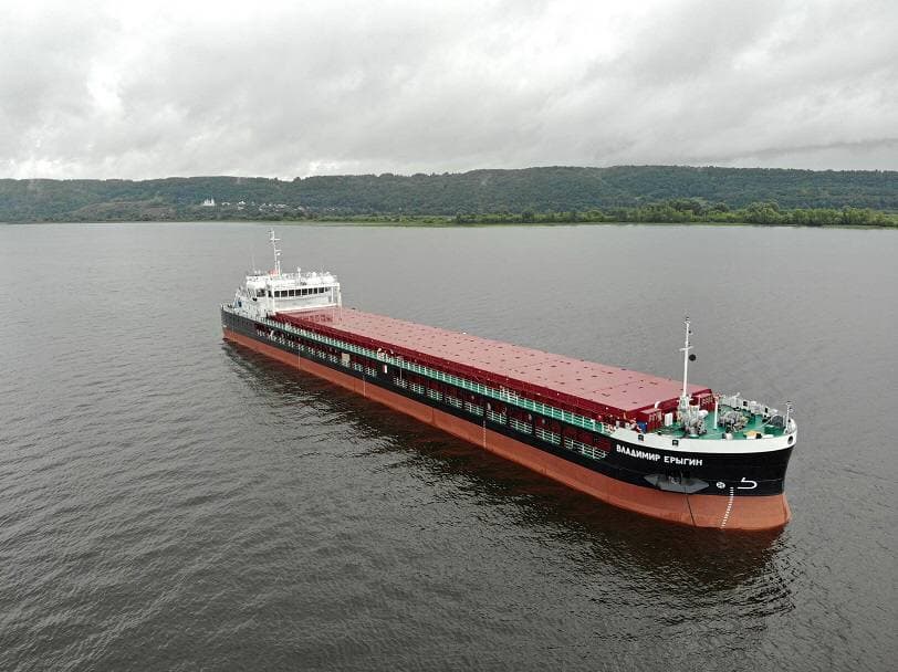 Новый сухогруз «Владимир Ерыгин» Волжского пароходства совершил первый рейс после загрузки пшеницей в порту Тольятти. Судно построено по проекту RSD71, который является развитием предыдущей модели RSD59.