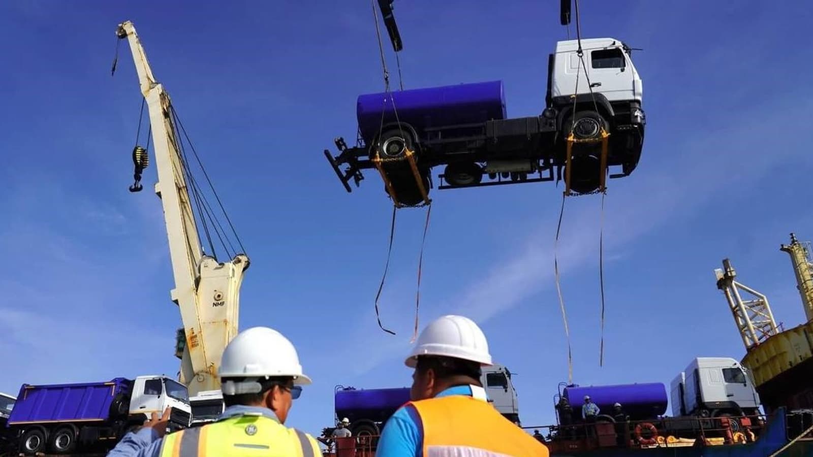 Пресс-служба МАЗ опубликовала фото прибытия судна в порт Коринто. Сюда доставили цистерны для воды, бетоносмесители, бортовые автомобили и самосвалы белорусского производства.