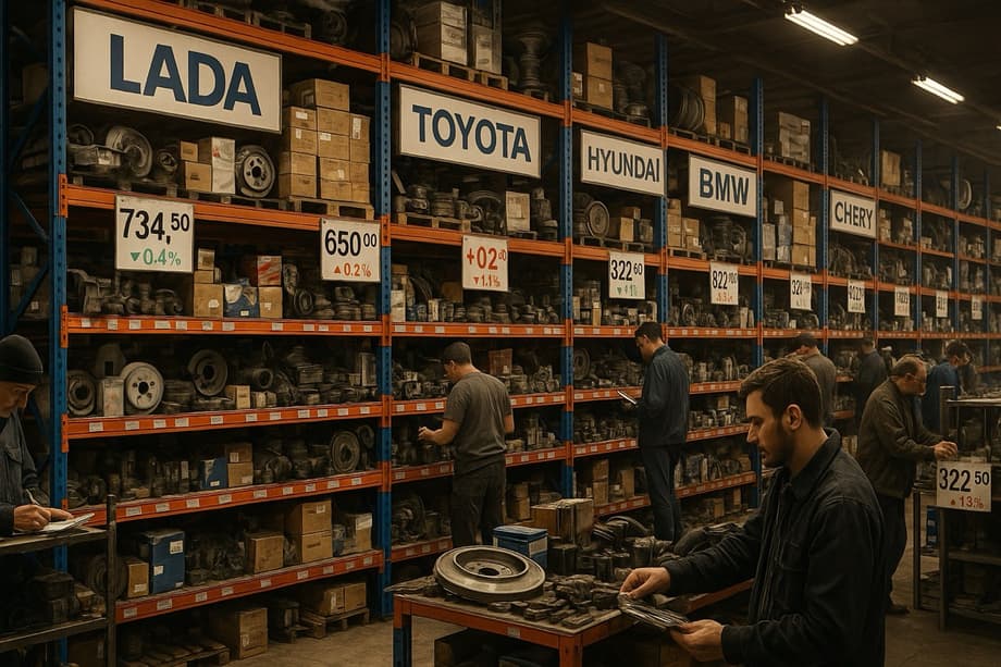 Наибольший спрос — на комплектующие китайских брендов, особенно Chery (+44%), а также Hyundai, KIA, VAG, BMW и Toyota. Основная структура продаж по категориям: кузовные детали — 26%, электрооборудование — 12%, двигатели — 11%, автосвет — 8%, подвеска — 8%.