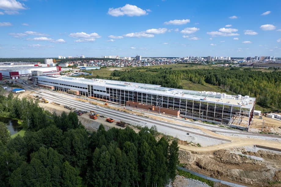 Установлены металлические конструкции двух производственных корпусов. Генеральным подрядчиком выступает компания «Синара-Девелопмент» (входит в «Группу Синара»).