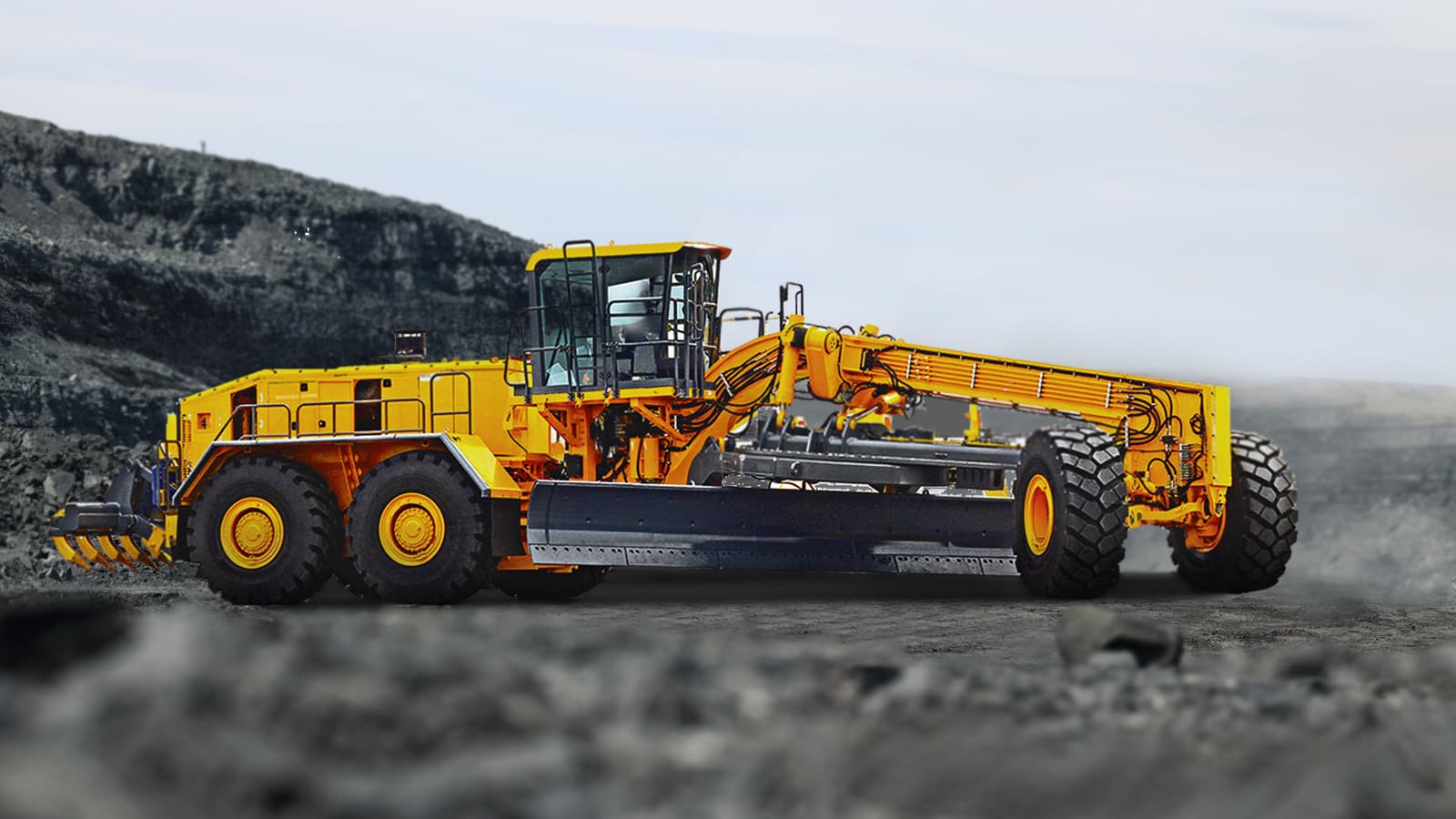 Отвал шириной 7,3 метра обеспечивает заглубление до 625 мм, а задний рыхлитель — до 455 мм. Согласно данным производителя, на рынке тяжёлых карьерных грейдеров сейчас представлены только два зарубежных бренда. С выходом БЕЛАЗа их стало три.