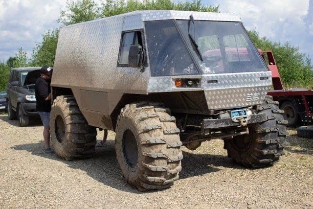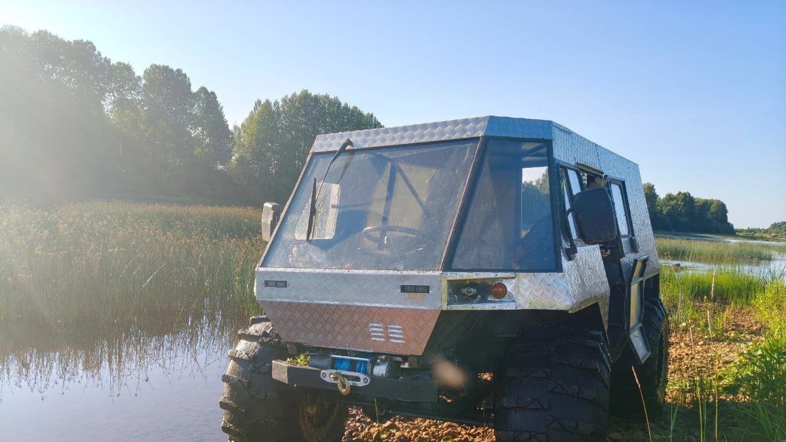 Машина предназначена для перемещений по охотничьим угодьям, особенно во время распутицы. Она собрана из деталей разных автомобилей (Suzuki, УАЗ, Газель, Renault), дополнительно докупались колеса и стекла, установлена автоматическая коробка передач. В итоге получился надежный «болотоход», который уже применялся как техническая поддержка на внедорожных гонках.
