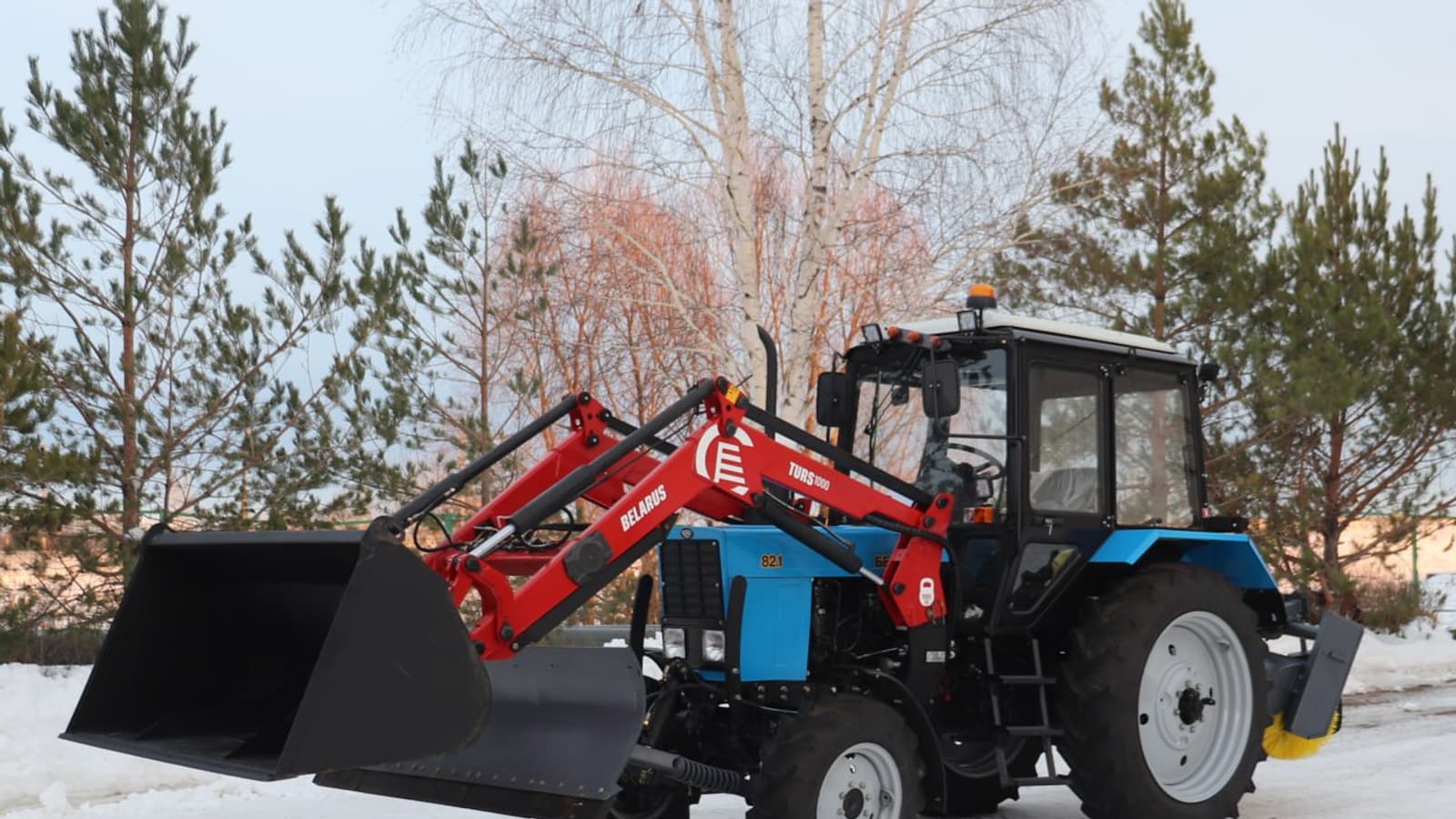 На уличной площадке находятся УДКМ-1 и УДКМ-3 на базе колесного трактора BELARUS 82.1. В качестве навесного оборудования идет коммунальный гидроповоротный отвал, погрузчик универсальный, щетка.