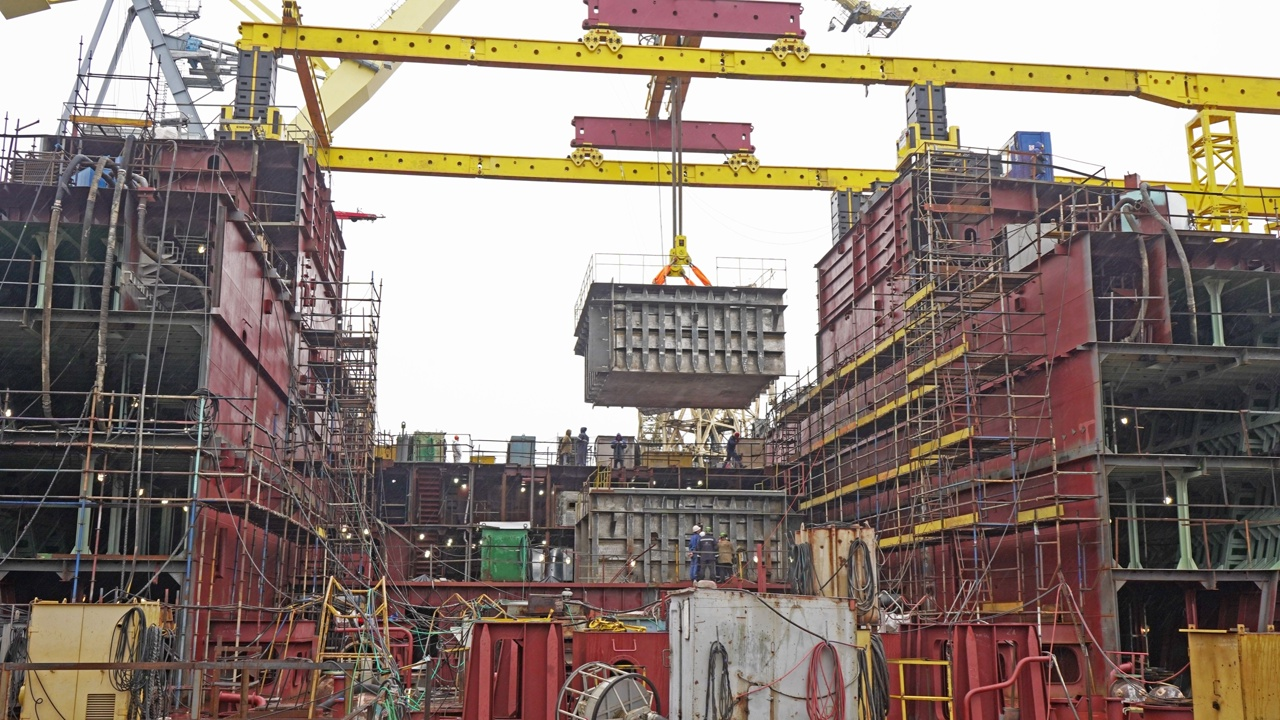 Баки были изготовлены специалистами цеха спецэнергетики Балтийского завода. Их установка на штатные места по левому и правому борту является важным этапом строительства, после которого начнется формирование корпуса реакторного отсека.