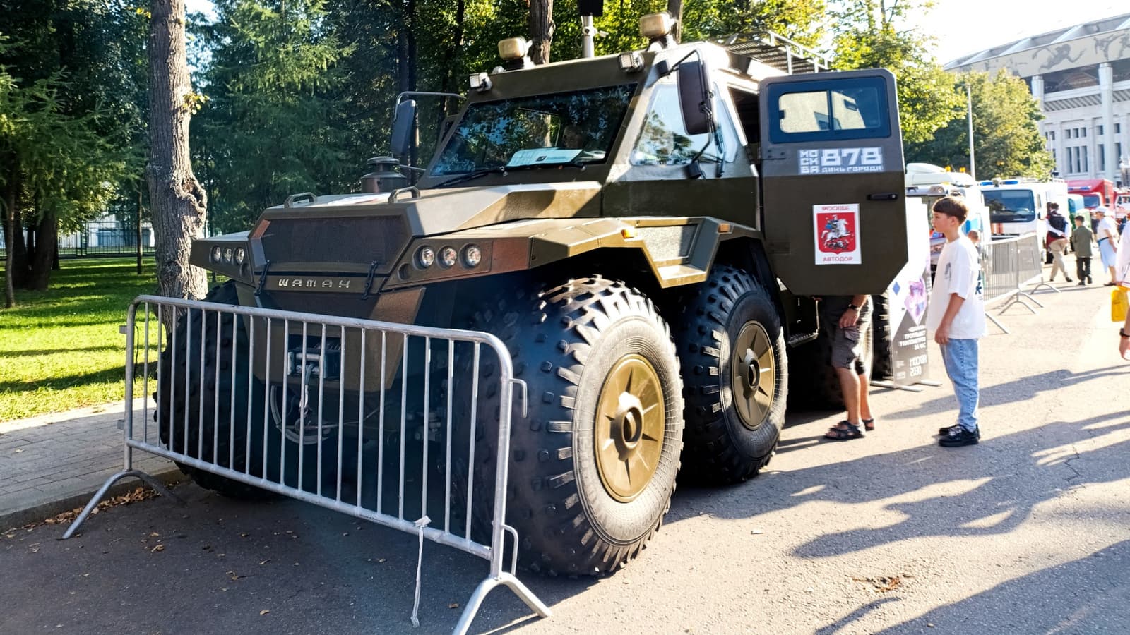 Посетители выставки городской спецтехники в Лужниках имеют возможность ознакомиться с плавающим вездеходом «Шаман». Транспортное средство, которым владеет московское ГБУ «Автомобильные дороги», играет важную роль в обеспечении поставок в труднодоступные районы Новой Москвы.