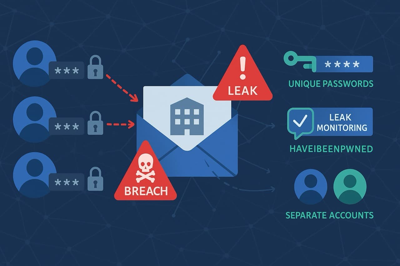 Специалисты рекомендуют разграничивать личные и рабочие аккаунты, использовать уникальные пароли, подключать мониторинг утечек и проверять корпоративные адреса через базы вроде HaveIBeenPwned.