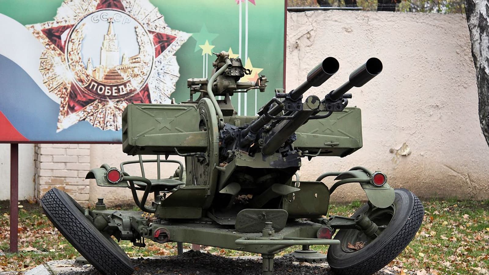 ЗУ-23 — советская установка, состоящая из двух автоматических пушек 2А14, станка, прицела и платформы на ходу.