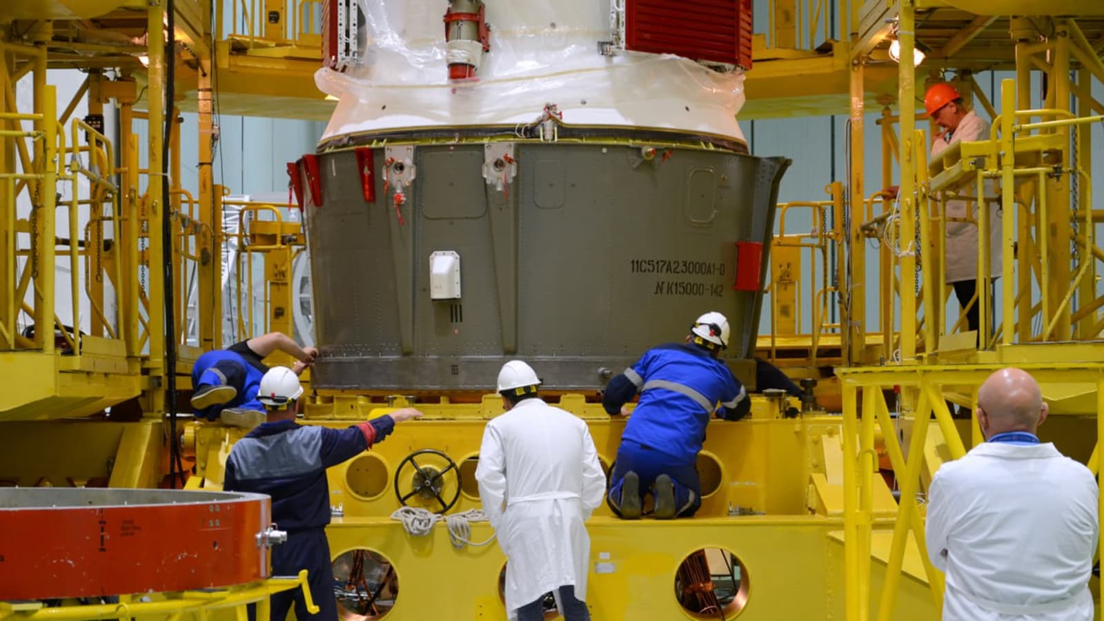 Специалисты РКК «Энергия» и профильных предприятий Роскосмоса состыковали грузовой корабль «Прогресс МС-32» с переходным отсеком ступени ракеты-носителя «Союз-2.1а», которая выведет его на орбиту. Об этом сообщила пресс-служба корпорации.