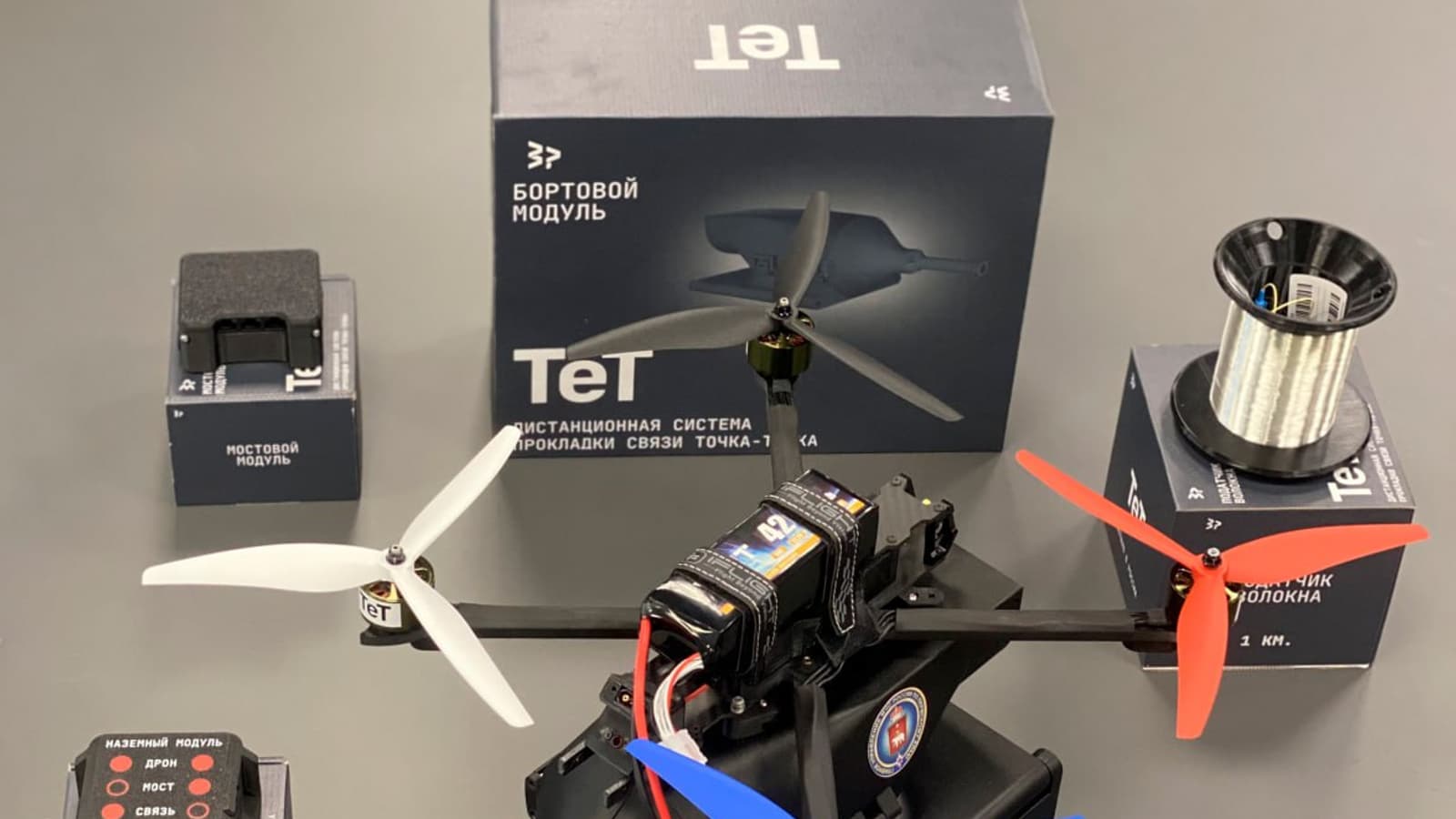 Российские инженеры разработали дистанционную систему прокладки связи «Тет». Она представляет собой беспилотник для быстрого развертывания защищённой линии связи до 20 км. В основе — оптоволоконный кабель, который дрон разматывает в полёте.