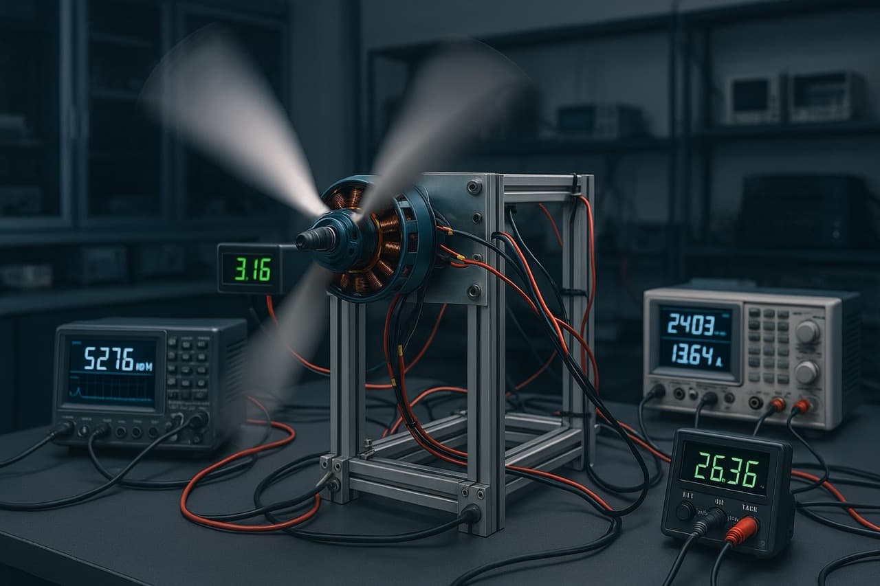 Стенды функционируют как комплексная система измерений и контроля. Данные с датчиков фиксируются в реальном времени через систему сбора информации. Это позволяет измерять механические параметры — частоту вращения и тягу, а также электрические характеристики, включая токи и напряжения на всех элементах. Полученные результаты дают возможность провести детальный анализ и внести коррективы в расчетные модели.