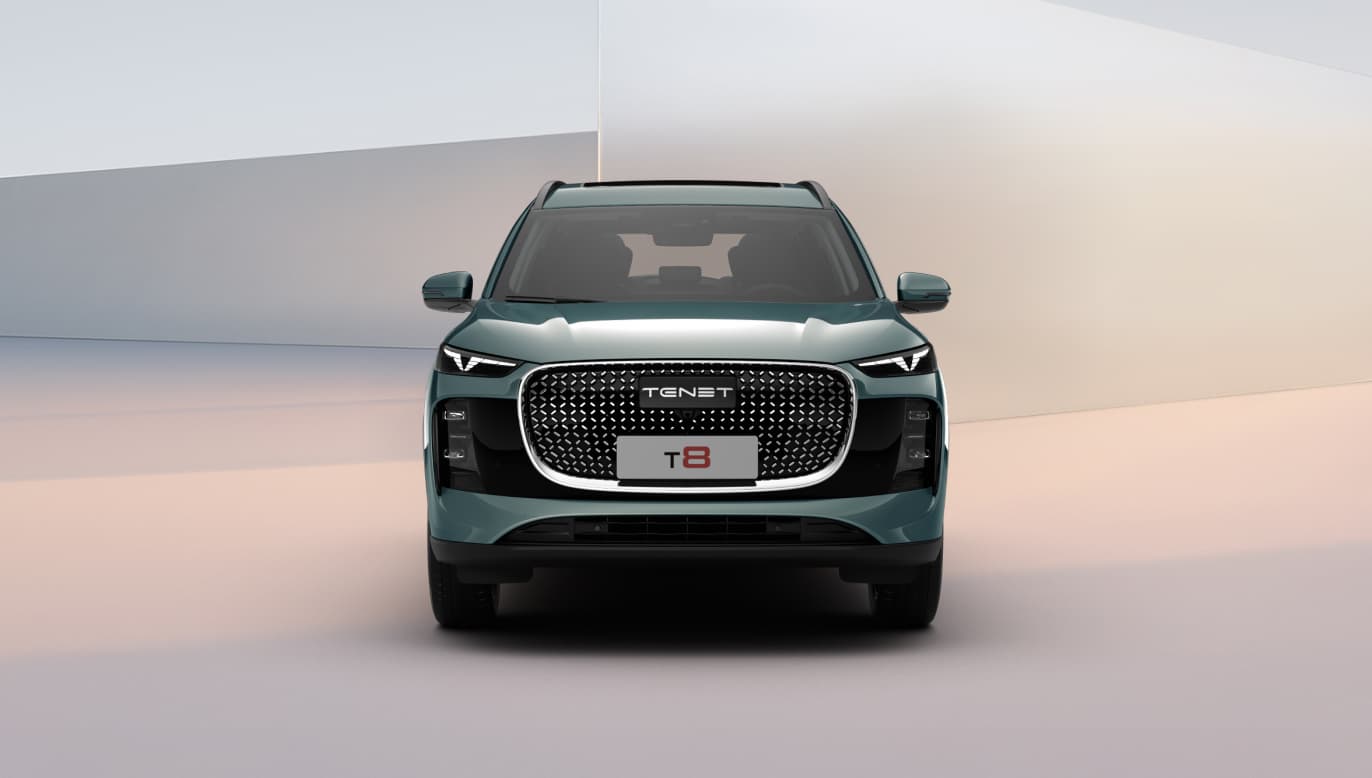 Кроссовер Tenet T8 в комплектации Prime имеет множество опций, включая черно-серый салон с светло-серой отделкой потолка, акустические передние стекла, электрорегулировки и обогрев передних сидений, полный «зимний» пакет, 18-дюймовые алюминиевые диски, светодиодные дневные ходовые огни и задние фонари.