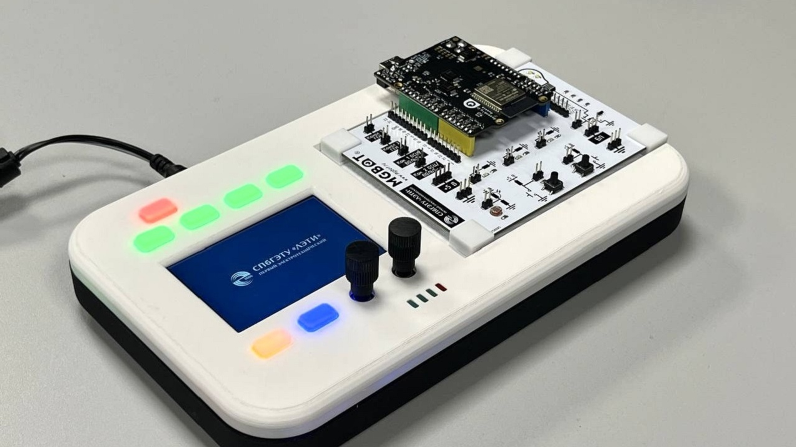 В Санкт-Петербургском государственном электротехническом университете «ЛЭТИ» разработали портативный лабораторный стенд для обучения школьников и студентов основам электроники. Презентация устройства прошла 27–29 августа 2025 года на XII Международном форуме «Технопром-2025» в Новосибирске. Разработка создана учёными НИКТИ БТС при поддержке компании «МГБот».