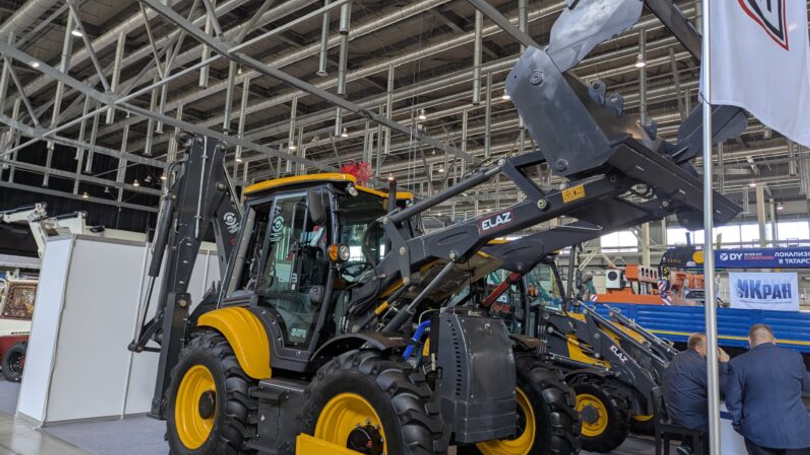 На выставке А8 МАШИНЫ РОССИИ в Екатеринбурге Елабужский автомобильный завод представил две модели полноприводных экскаваторов-погрузчиков ELAZ-BL 888 и 880.