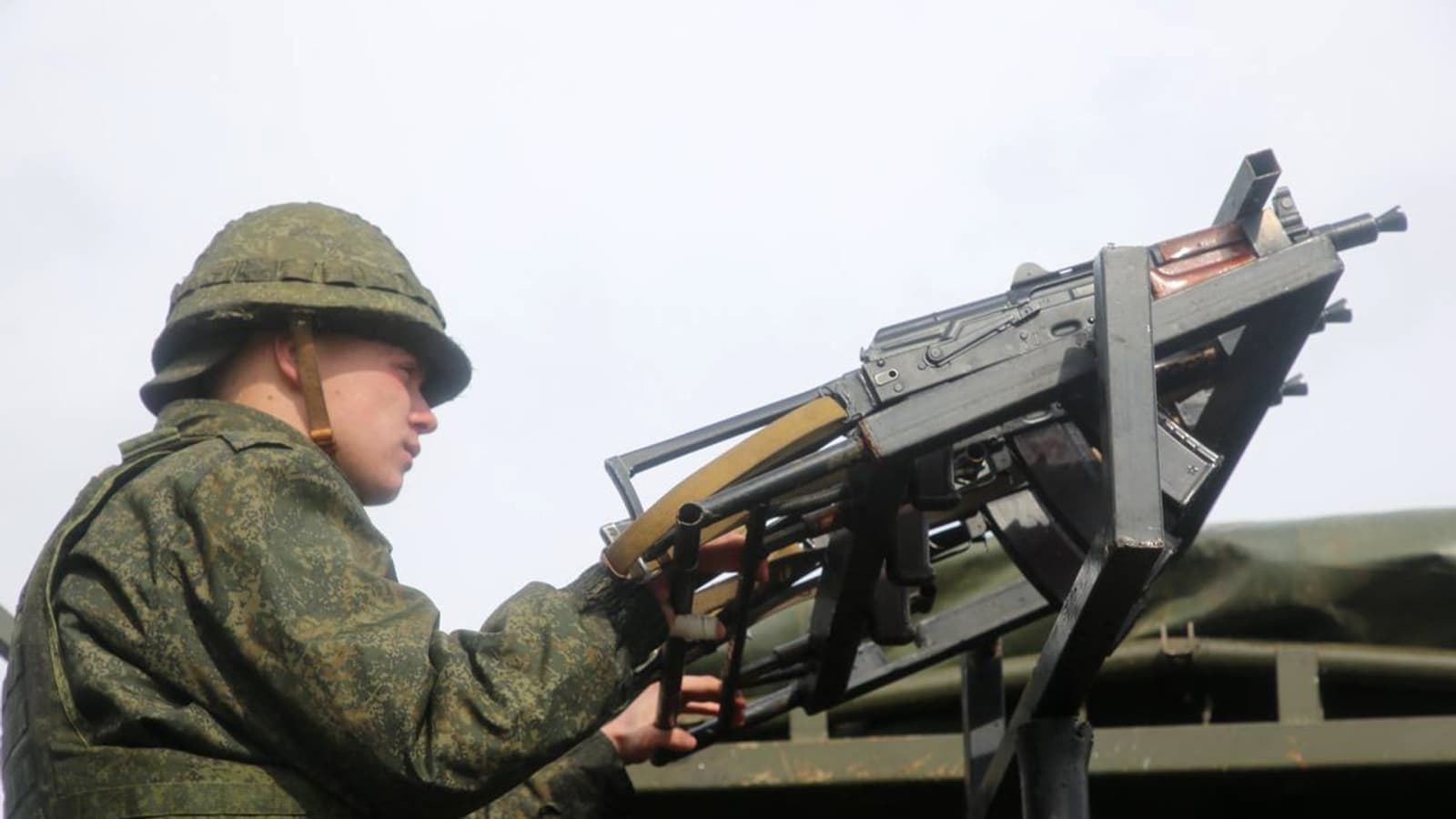 Белорусские военные на учениях «Запад-2025» развернули турель из нескольких автоматов АКС-74У для защиты от дронов. На фотографии в Сети обратил внимание Telegram-канал «Военный осведомитель».