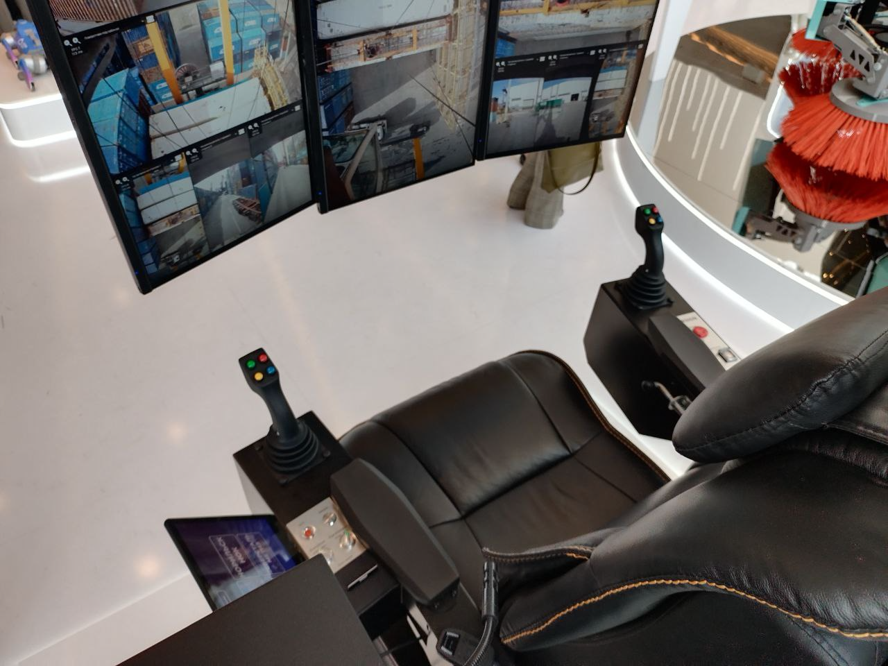 Комплекс «Вирсайн СДУ» включает кресло оператора, дисплеи для отображения данных с нескольких кранов и систему переключения между ними с помощью ключ-карт. Технология смешанной реальности с 4K-камерой обеспечивает обзор в 360 градусов.