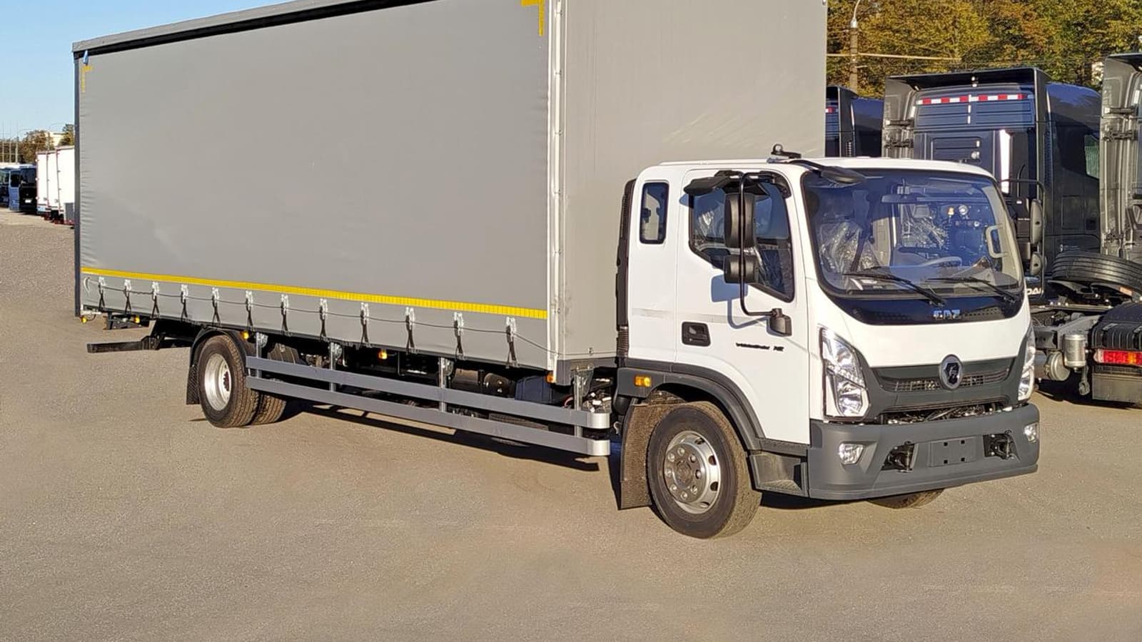 Платформа с внутренними размерами 8,4×2,48×2,7 м вмещает до 20 стандартных европаллет. Надстройка оснащена сдвижной крышей «Премиум» с боковыми шторами и алюминиевыми бортами.