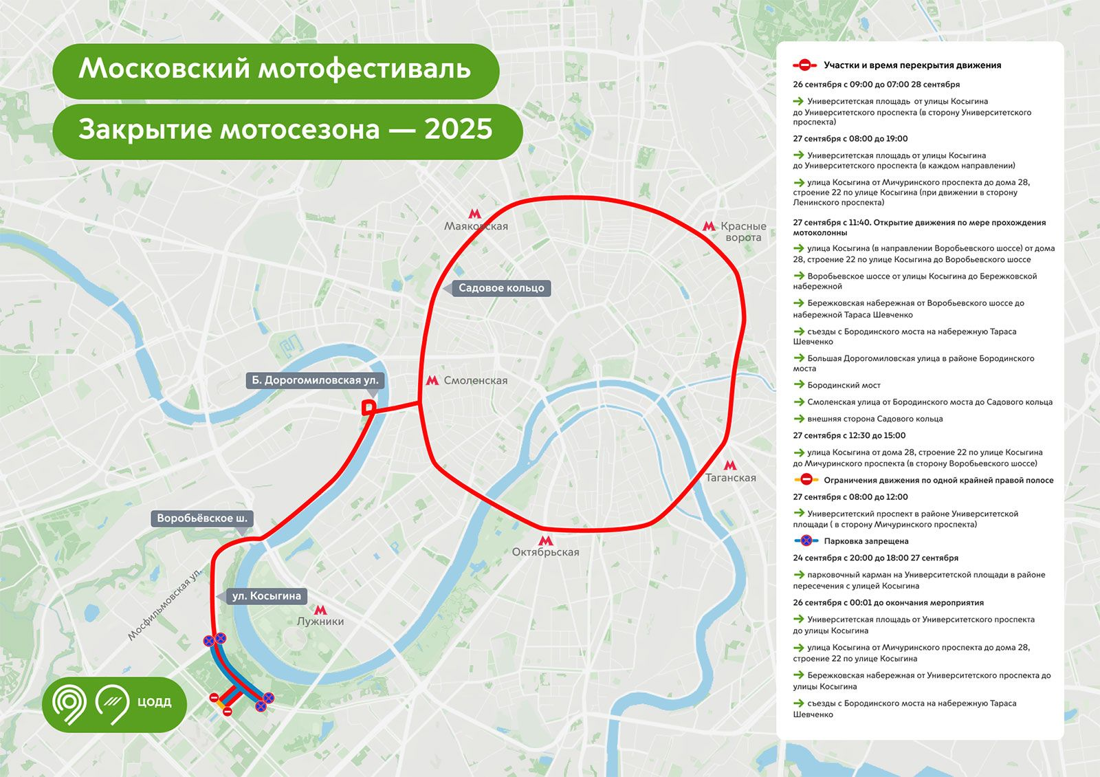 С 11:40 27 сентября движение будет закрыто на следующих магистралях: