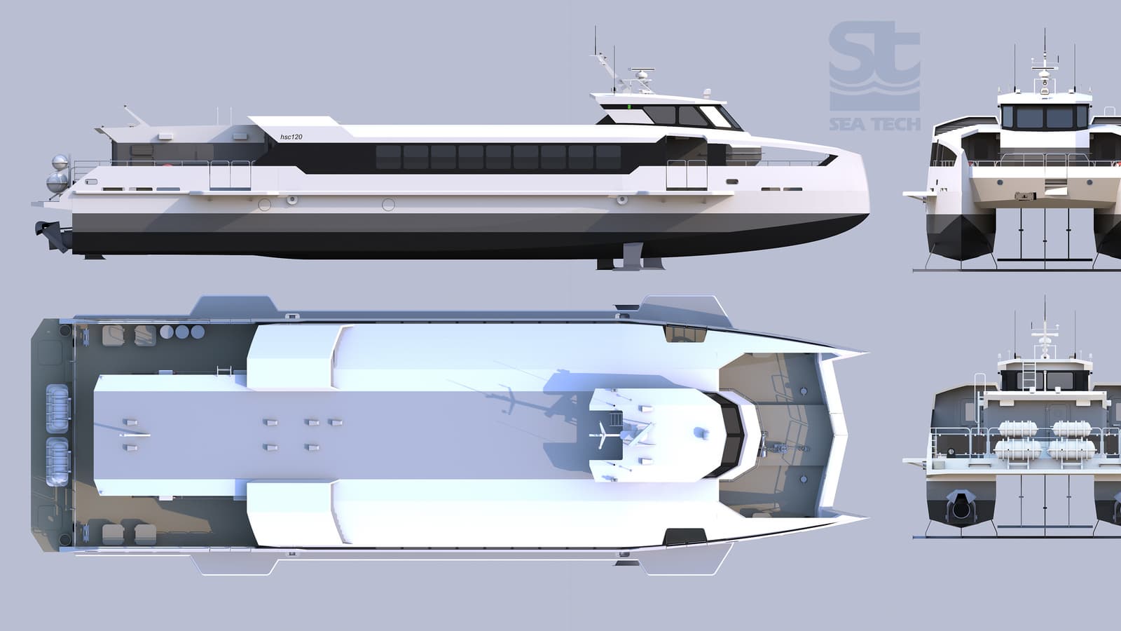 HSC120 представляет собой облегчённую и удешевлённую версию катамарана HSC150B. Судно — глиссирующий катамаран с динамической разгрузкой подводными крыльями. В отличие от классических СПК, корпус при движении разгружается, а не выходит на крыло, что повышает энергоэффективность, скорость и снижает расход топлива.