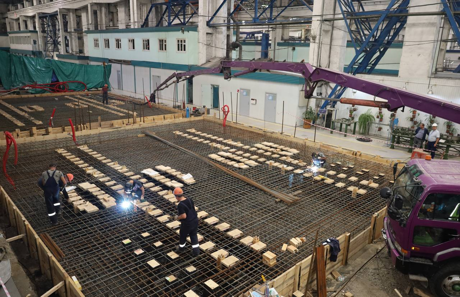 В цехе провели масштабную подготовку. Сначала был вырыт котлован, затем сварен арматурный каркас. В фундамент было заложено более 170 анкерных колодцев, которые обеспечат надёжное крепление станков. Завершающим этапом стала заливка бетонных оснований.