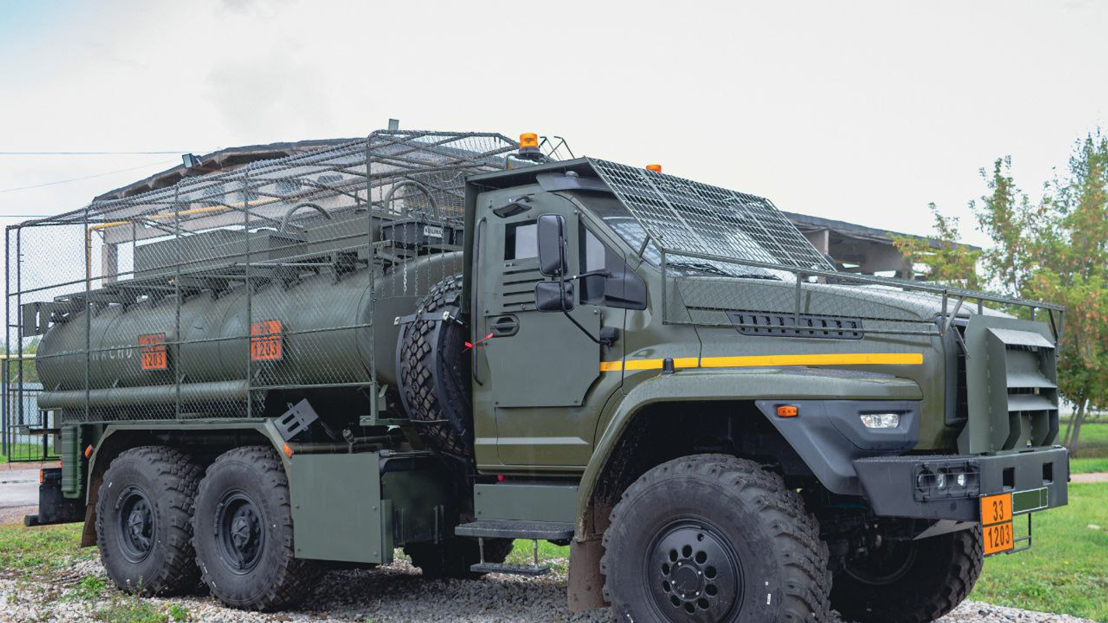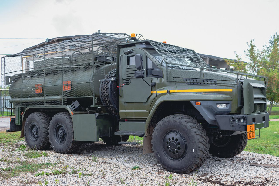 Гражданский крупнотоннажный автомобиль «Урал NEXT» был переоборудован заводчанами для нужд Минобороны РФ. Теперь эта машина, изначально созданная для мирных перевозок, успешно может справляться с задачами транспортировки топлива непосредственно на линии боевого соприкосновения.