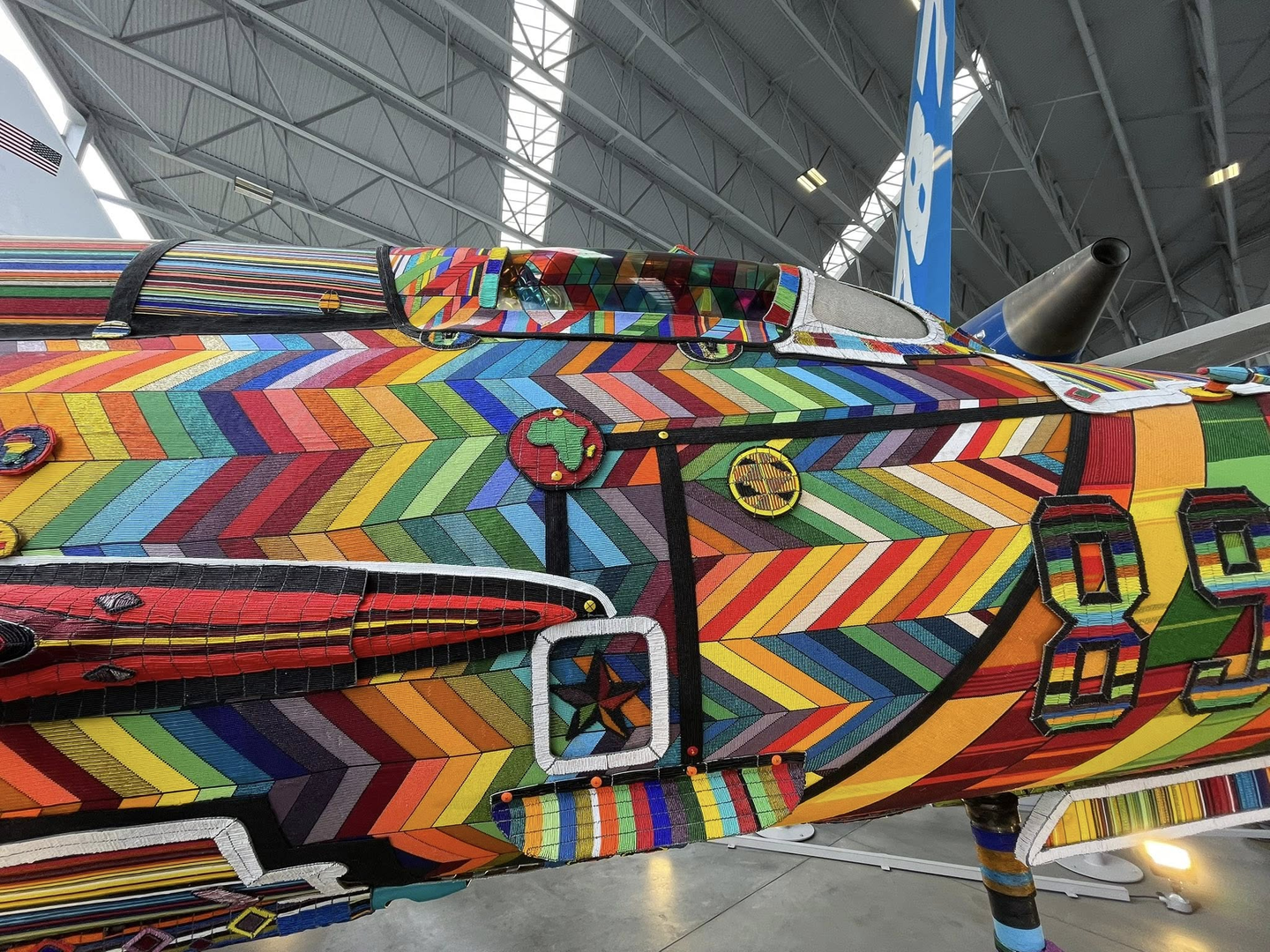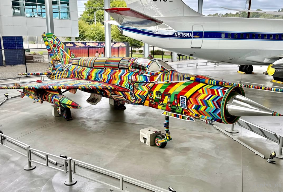 В США, в музее авиации Сиэтла, 21 июня 2025 года состоялась презентация уникального арт-объекта. Это списанный советский истребитель МиГ-21, который был полностью покрыт миллионами разноцветных бусин.
