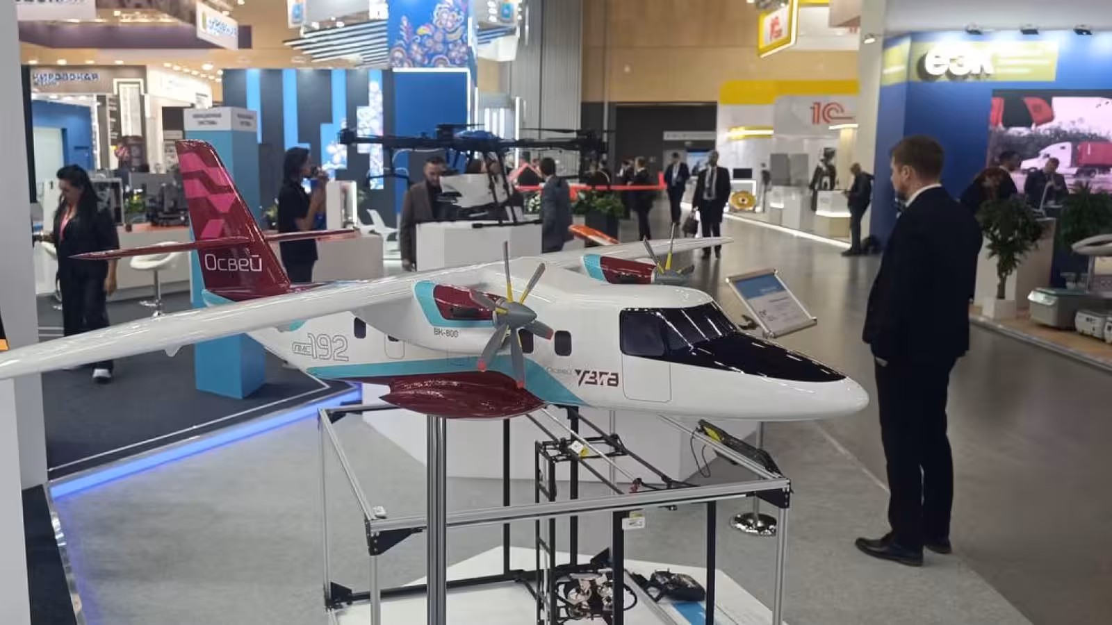 На минской выставке «Иннопром» представили макет нового российско-белорусского самолёта ЛМС-192 «Освей». Журналисты заметили, что модель изменилась в сравнении с первым рендером, показанным в мае 2024 года.