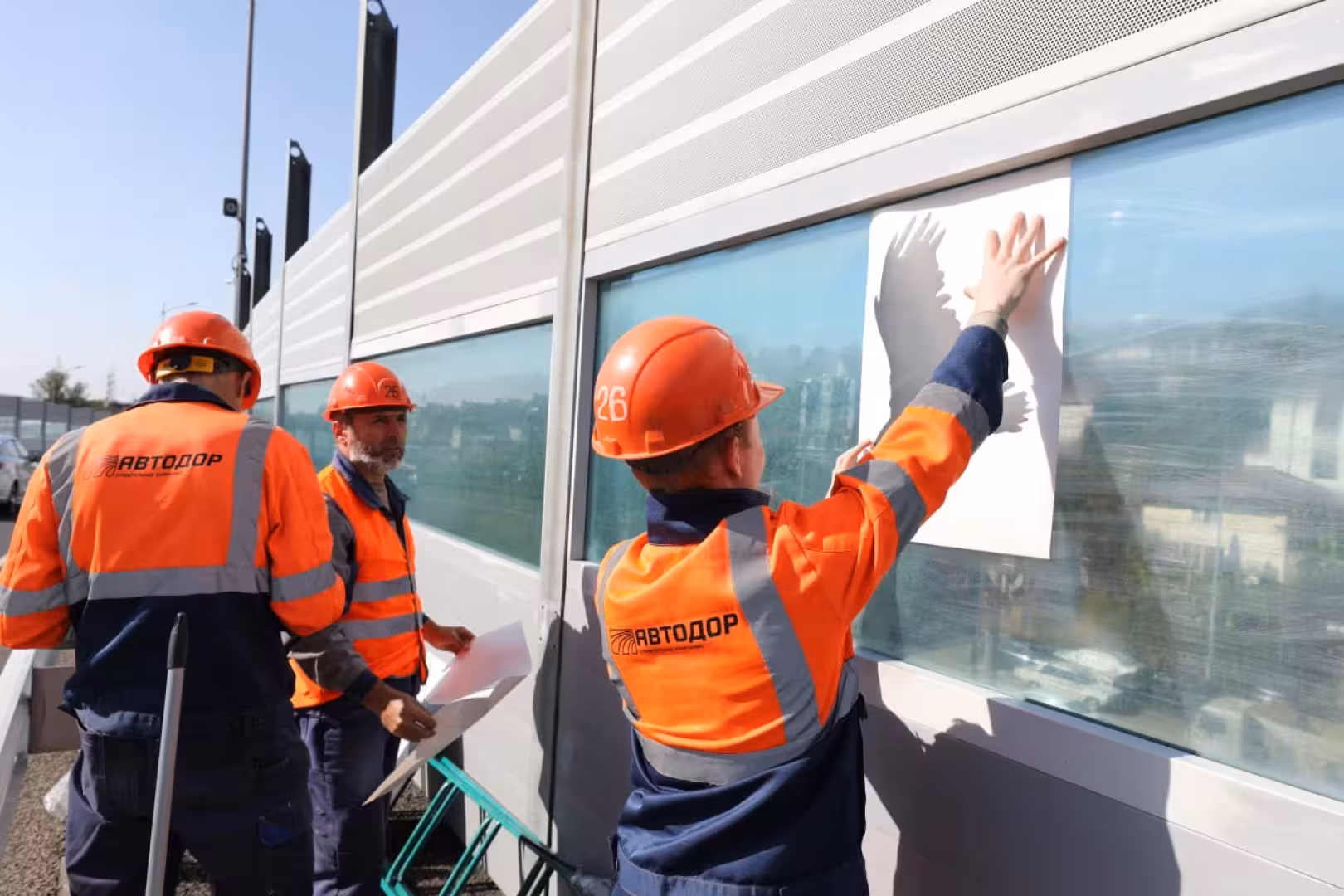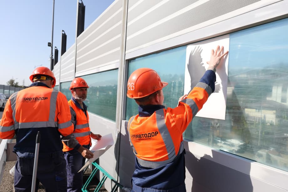 «Автодор» разместил наклейки с силуэтами хищных птиц на шумозащитных экранах Ивановской эстакады у восточного портала обхода Адлера. На это обратил внимание журналист Максим Кадаков.