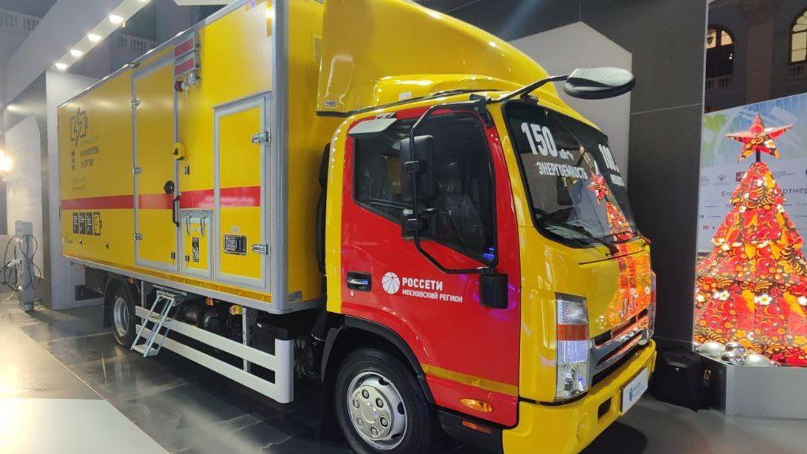 В Москве на форуме «Российская энергетическая неделя» представили первый мобильный накопитель электроэнергии под брендом «Россети». Грузовик создан на шасси китайского JAC N120 и оснащён батареей мощностью 100 кВт и ёмкостью 150 кВт·ч. За производство отвечает компания «Амперион» из группы «Роснано».
