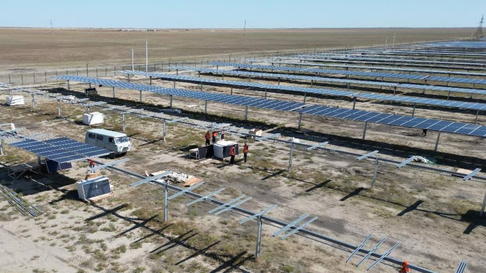 На площадке завершается монтаж подстанции напряжением 110 киловольт, устанавливаются опорные конструкции и фотоэлектрические модули. В строительстве задействованы подрядные организации, включая местные компании, что способствует развитию инфраструктуры района.