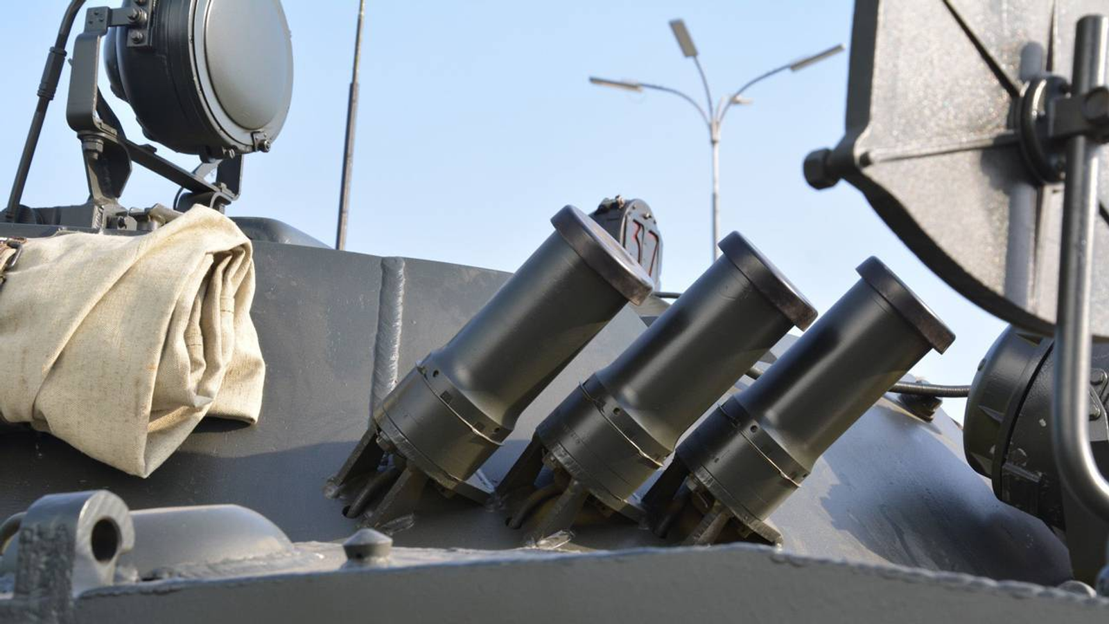 Российские военные продемонстрировали испытания самодельного комплекса активной защиты от дронов (КАЗ), созданного на основе пусковых установок системы 902 «Туча». Установка претерпела модернизацию и теперь стреляет не дымовыми гранатами, а снопом поражающих элементов.