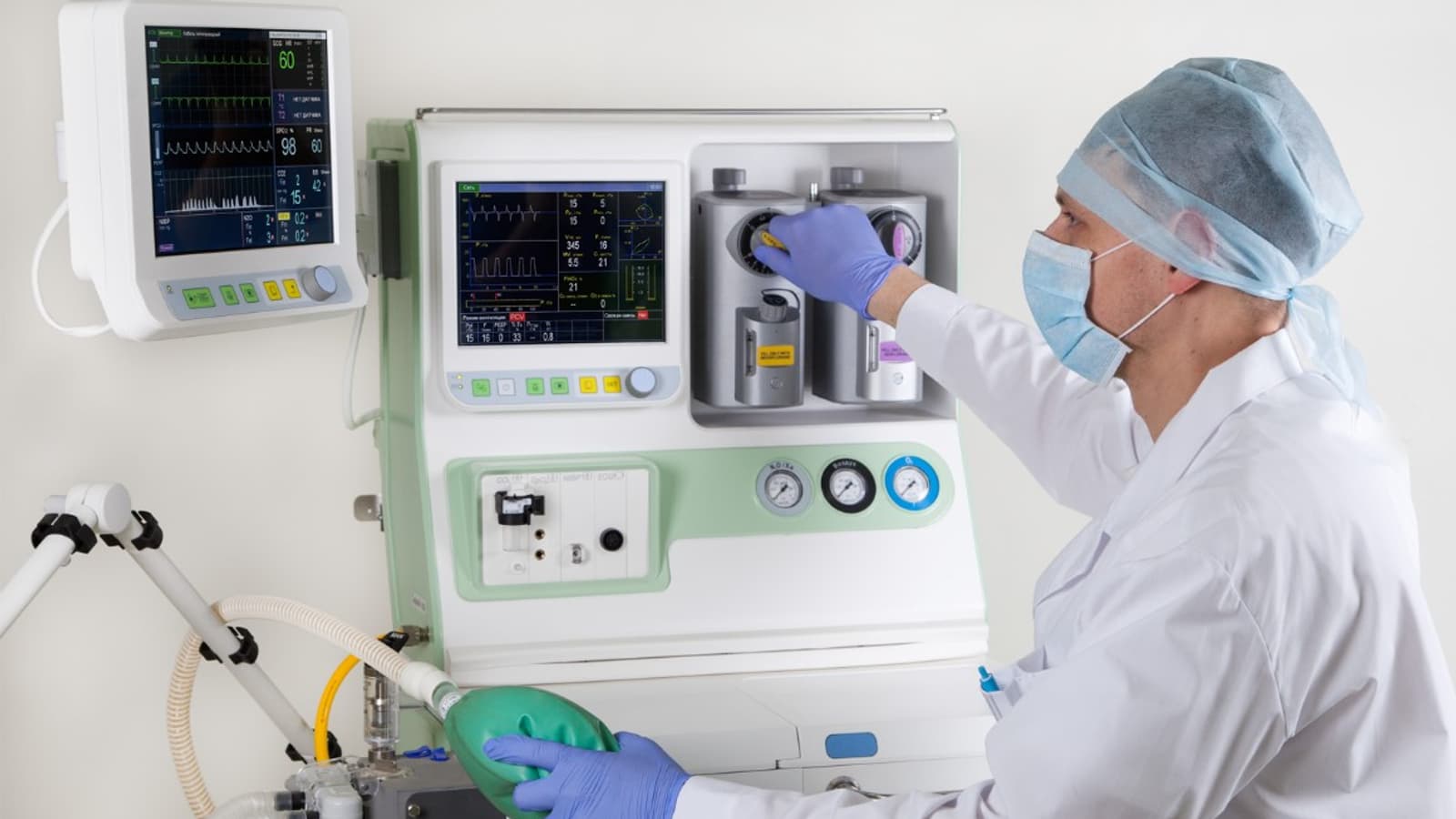 - Параметры на мониторе — давление, дыхательный объём, частота вентиляции, частота пульса, частота сердечных сокращений артериальное давление и тд