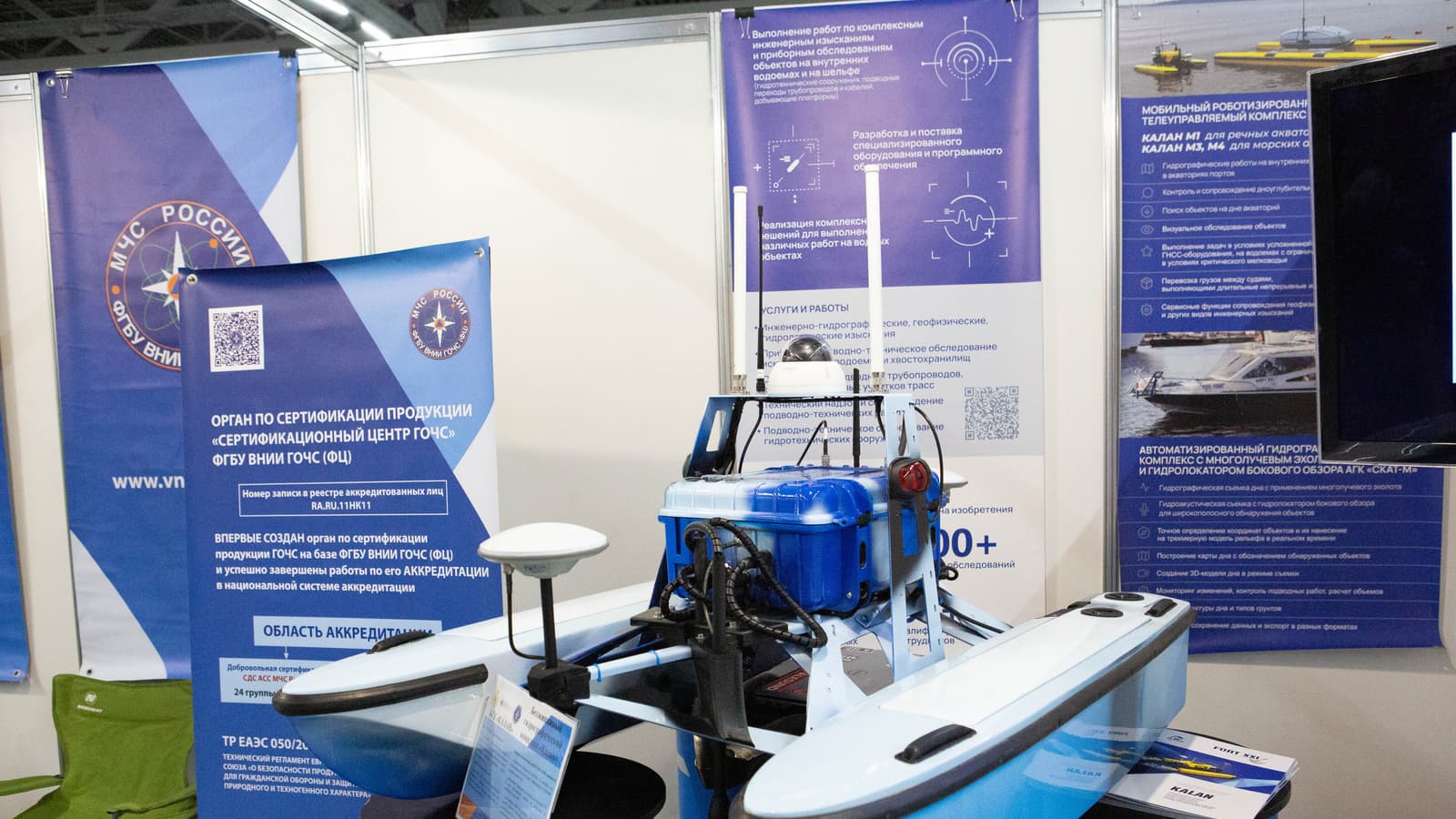 Беспилотный мобильный надводный комплекс «Калан», позволяющий заменять водолазов при проведении опасных работ, представили на выставке «Интерполитех-2025» в Москве учёные Всероссийского научно-исследовательского института по проблемам гражданской обороны и чрезвычайных ситуаций.