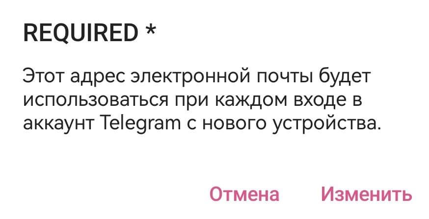 Адрес электронной почты будет использоваться при каждом входе в аккаунт с нового устройства, указано во всплывающем информационном окне мессенджера.